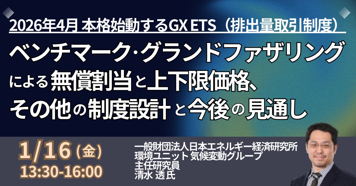 【JPIセミナー】「ベンチマーク・グランドファザリングによる無償割当と上下限価格、その他の制度設計と今後の見通し」1月16日(金)開催