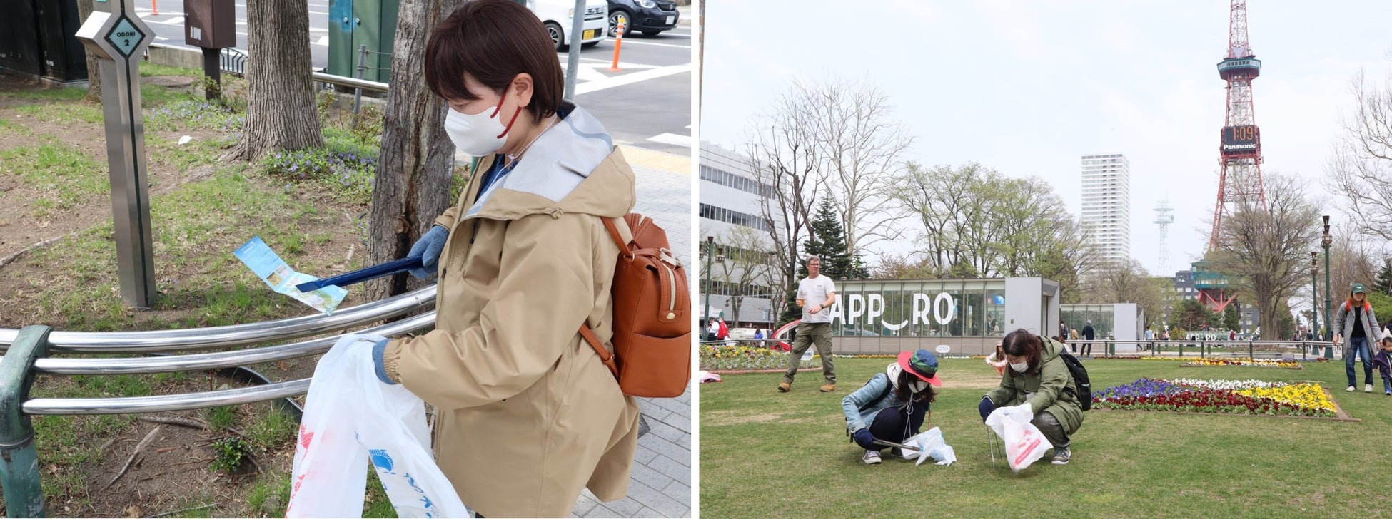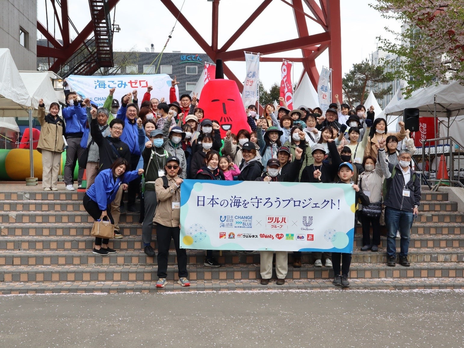 ・開催概要:株式会社ツルハホールディングス様とユニリーバ・ジャパン・カスタマーマーケティング株式会社様と共同し、さっぽろテレビ塔の人気キャラクター「テレビ父さん」と一緒にごみ拾いを行い、増え続ける海洋ごみについて考えるきっかけ作りを目的としたイベント『テレビ父さんと大通公園でごみ拾い!』を開催。参加者にはユニリーバとツルハからの参加賞が配られた。