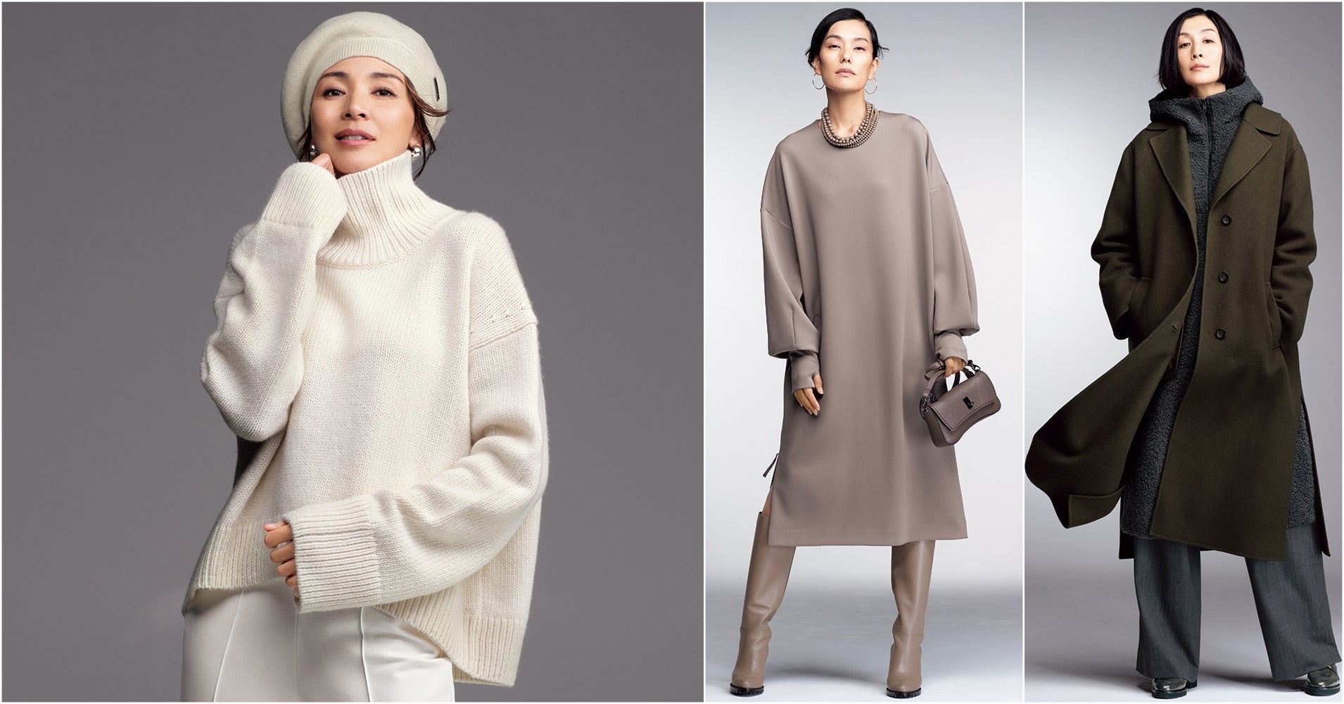 「ボアを部分使いした軽量ダウンは、コートインでも、一枚でも輝く優秀なアイテム。私自身もずっと欲しかったので作っちゃいました」と、未希さん自身が欲しいものをカタチにしてくれました。「軽やかなコートが主流の今、一枚でもレイヤードでも快適で、カジュアルでも優雅に見えるロング丈コートは、ひと際魅力的。季節の流れを楽しみながら、色んなシーンで長く愛用していただけたら嬉しいです」。未希さんが企画した「ウール混 一重仕立てコート」と合わせても、1枚で着ても・・・いろいろなスタイリングが楽しめる一着です。