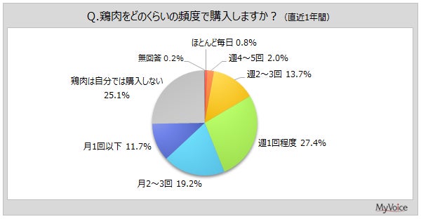 購入頻度は「週1回程度」が27.4%、「月2~3回」が19.2%となっています。