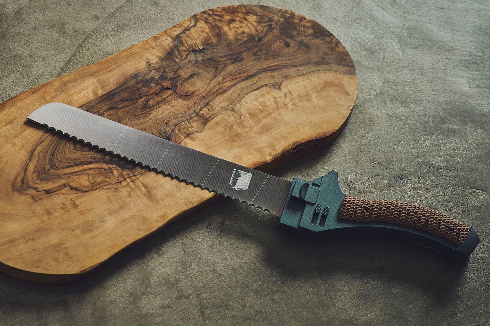 超硬質ブレードをイメージした包丁の第2弾が登場。一時完売となっていた第一弾も再入荷しました。TVアニメ『進撃の巨人』と、日本が世界に誇る包丁の産地「関市」の包丁ブランド「NiNJA」とコラボレーションで実現した、切れ味とデザインを両立した包丁です。