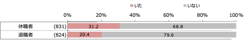 - 新型コロナウイルスの影響で保育園や学校の休園・休校を理由にした非正規雇用の「休職者」がいた企業は31.2%。「退職者」がいた企業は20.4%となった【図4、5】