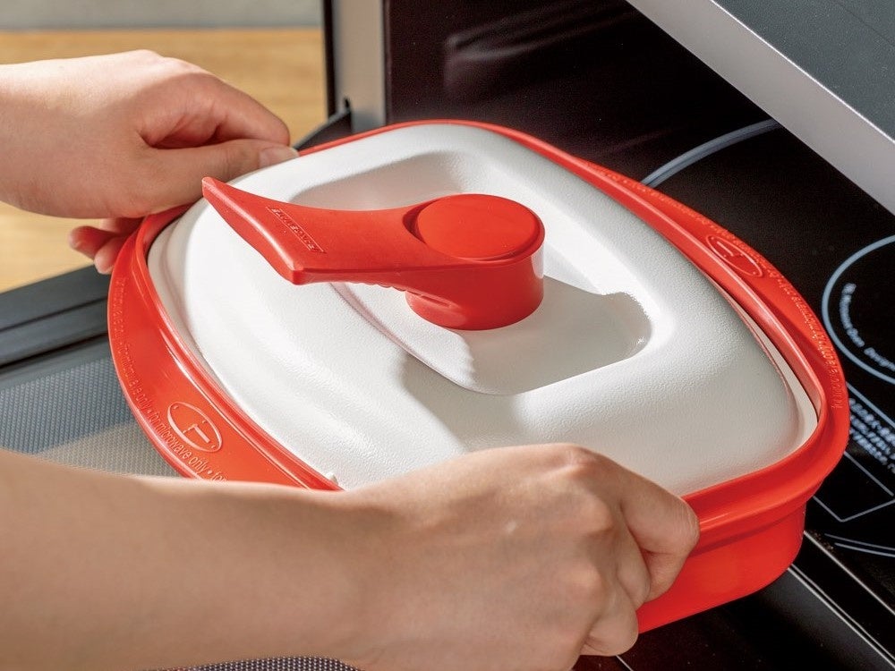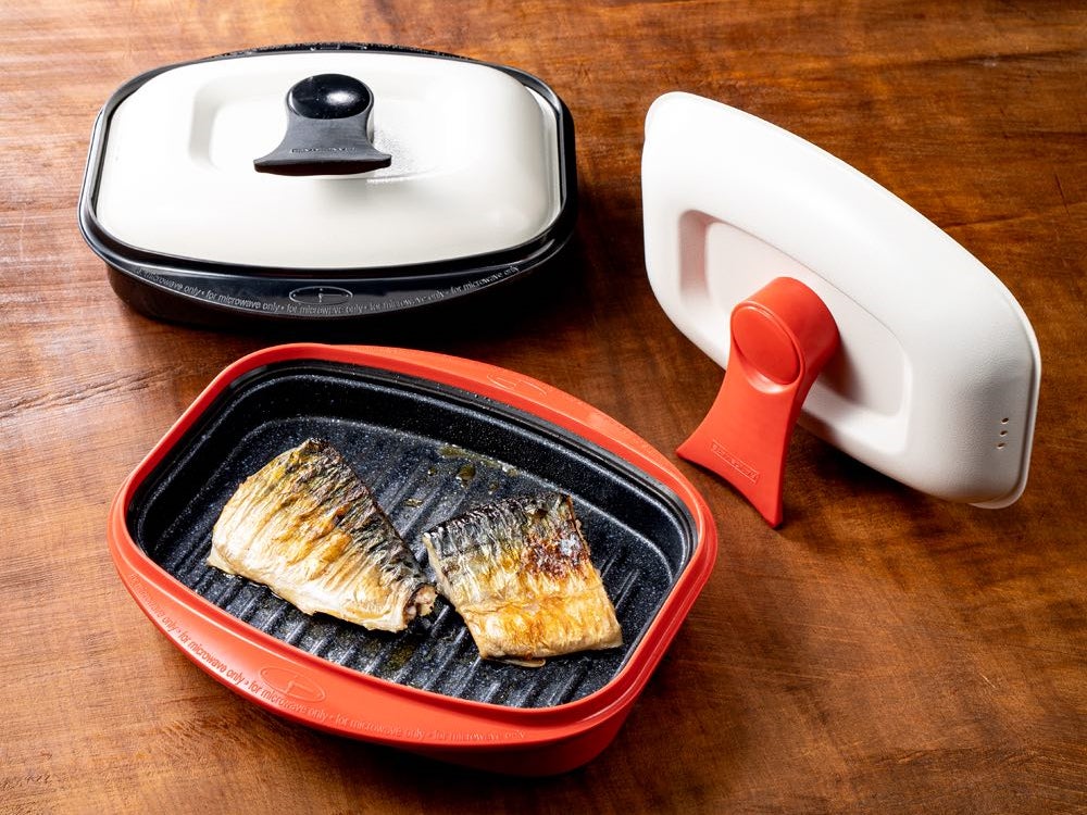 電子レンジでチンするだけで、フライパンで焼いたような焼き目がつく『レンジメートプロ グランデ』。「サバの塩焼き」などの焼き魚はもちろん、火が通りにくい「チキンステーキ」も香ばしい焼き目がついて美味しく仕上がります。その実力から、シリーズ累計500万台※2を突破!大きくて四角いタイプ「グランデ」はディノスでしか買えない特別モデルです。※2005年3月~2023年9月(出荷台数ベース、輸入代理店調べ)