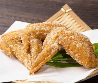 引き締まった肉質と、ほかの国産若鶏と比べて多く含まれる旨み成分が特徴の“奥州いわいどり”を使用。醤油・生姜・玉ねぎからなる秘伝のタレに漬け込み、馬鈴薯でんぷんを薄くまぶして揚げた岩手県一関市のソウルフードです。衣はサクサク、お肉はジューシー。生姜の爽やかな香りと玉ねぎの甘みが特徴で、ご飯のおともやお酒のアテにぴったり!