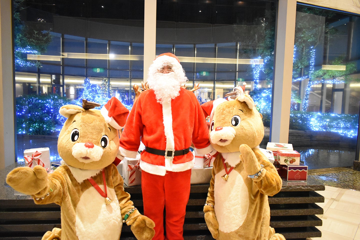 ディナータイムには各テーブルにサンタクロースとトナカイ2匹が登場し、お客様のテーブルにお伺いしてお子様へプチギフトをプレゼントします。記念に写真撮影をどうぞ。