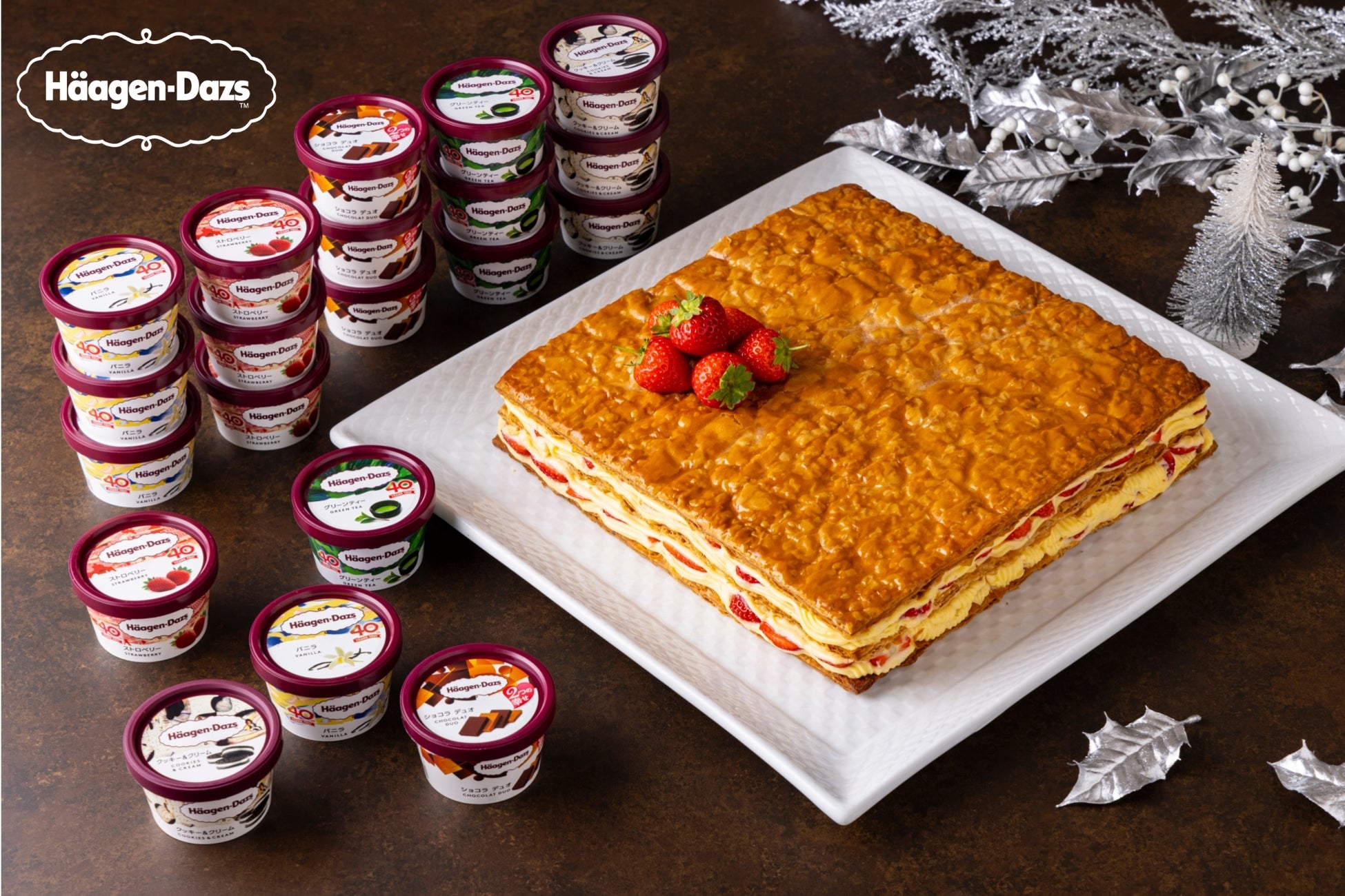 ・ランチタイム:苺のモンスターミルフィーユ/ハーゲンダッツアイスクリーム(バニラ、ストロベリー、クッキー&クリームほか日替わり5種)