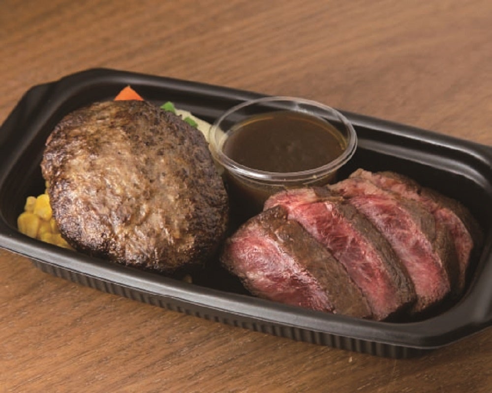 希少部位であるフィレを旨味たっぷりに焼き上げたステーキを黒毛和牛1頭分の旨味がつまったハンバーグのコンボメニュー。おうちご飯にスペシャルな1さらが欲しい時などにピッタリなメニューです。