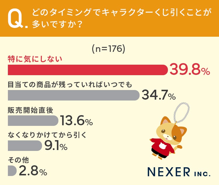 ■キャラクターくじ引くことが多いタイミング、34.7%が「目当ての商品が残っていればいつでも」