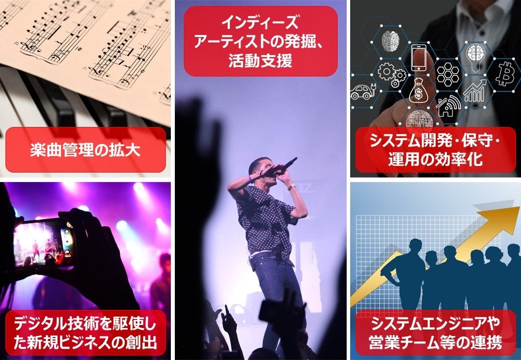 当社は「次代を奏でる著作権エージェント」として、楽曲の著作権管理事業のみならず、音楽コンテンツの利用促進、アーティスト活動の支援などを通じて音楽産業・音楽文化の発展に寄与することを目的とした事業を展開しております。