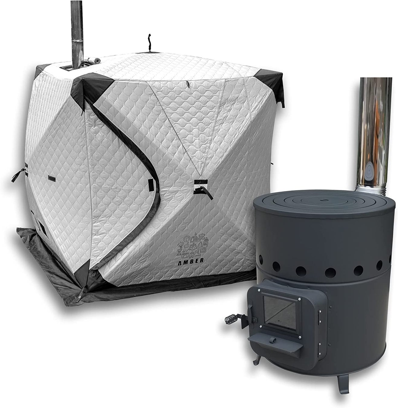 AMBERサウナテント・薪ストーブセット4人用 難燃・防水加工 ロウリュウ可
