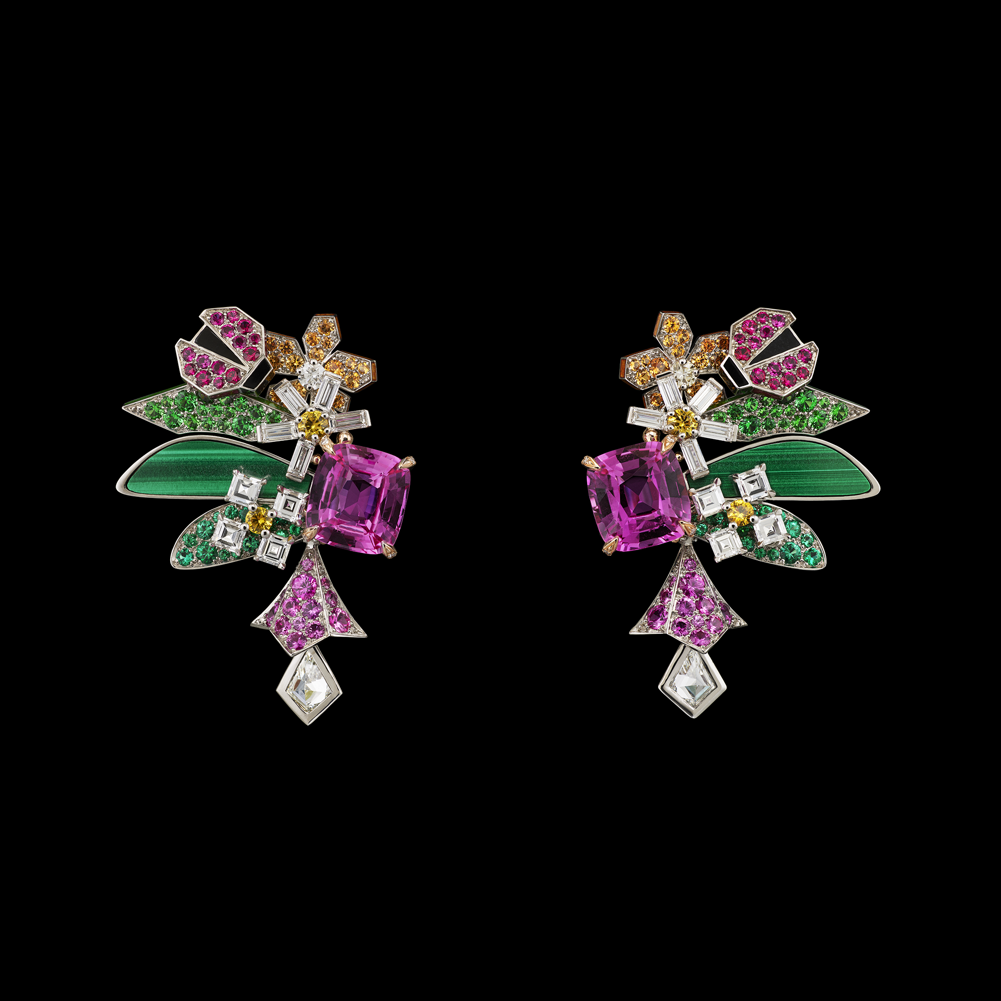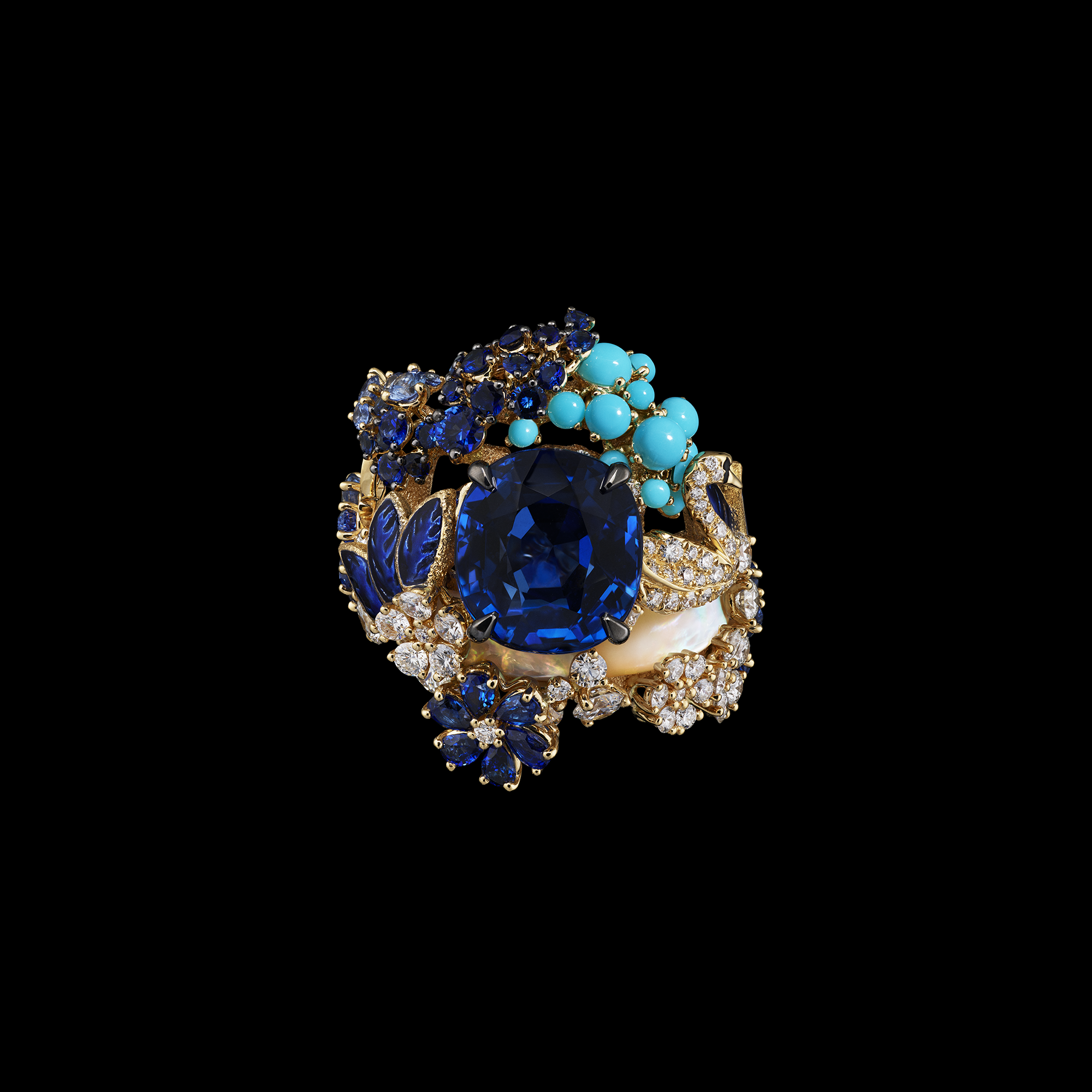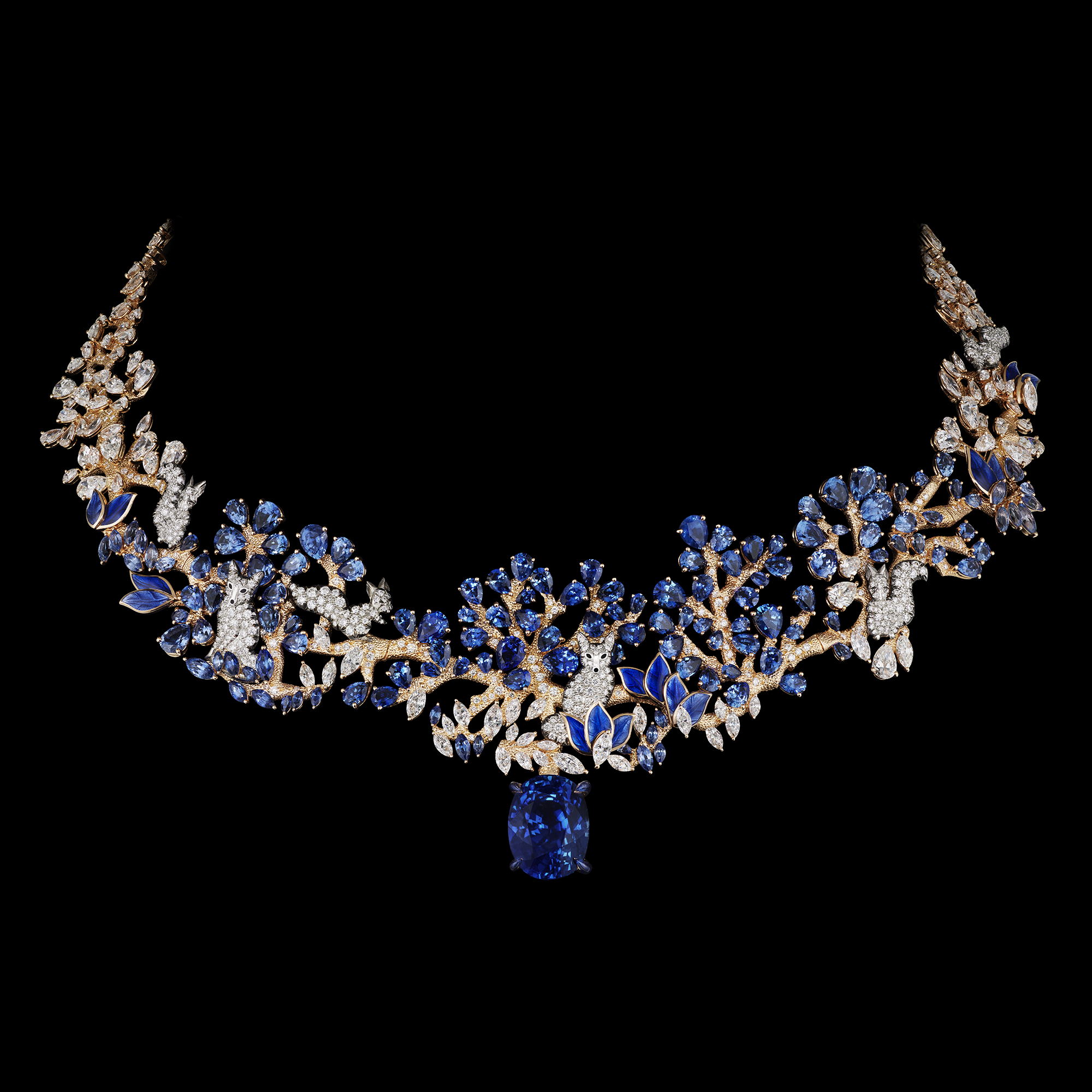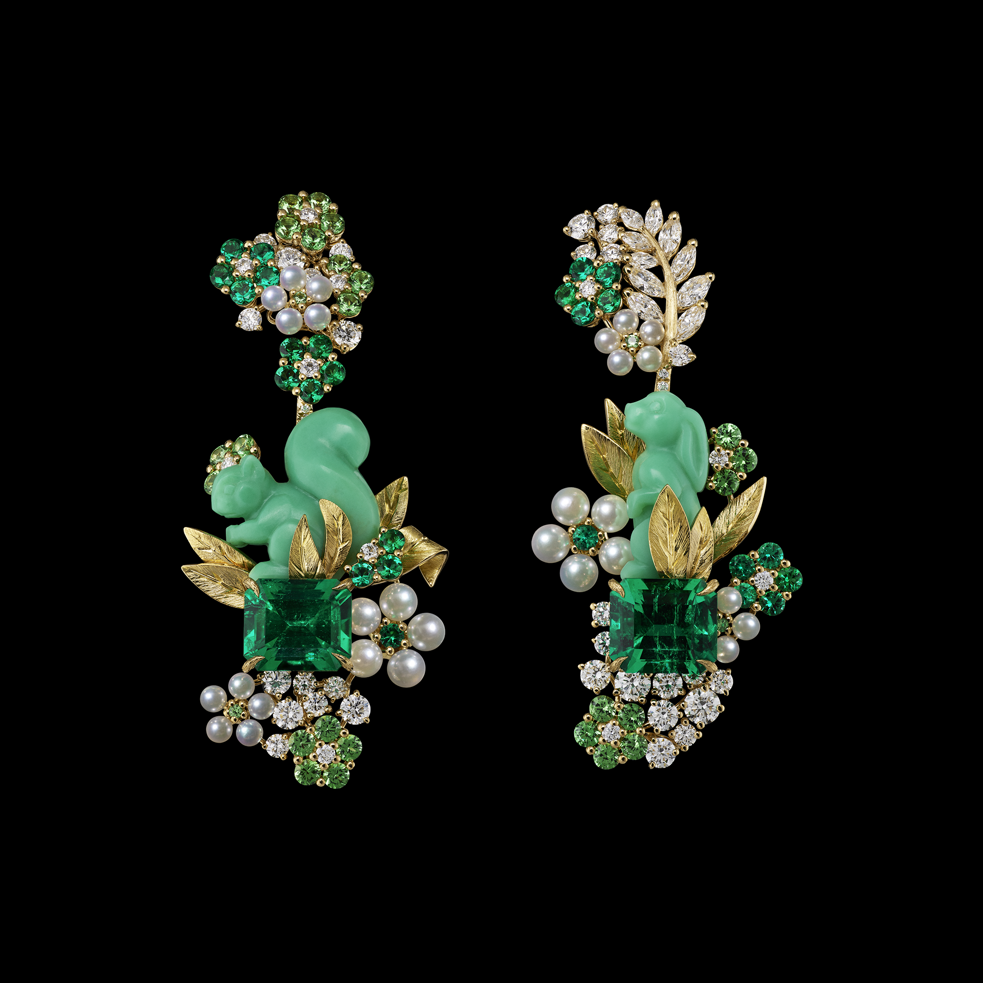 おとぎ話のようなイラストの世界を再解釈し、色調とボリューム感の組み合わせで美しさがより際立つ、小さくも最上級の フレスコ画のように、新作コレクションはミリー ラ フォレの庭園を軽やかに散策するよう誘います。それぞれのピースには 詩情豊かな動植物が印象的にあしらわれ、魅力的なデザインが目を引きます。ゴールドのウサギは、煌めくダイヤモンドが パヴェセッティングされた茂みに飛び込み、2羽のフクロウは、燃えるように赤いルビーに彩られた枝の間を羽ばたきます。堂々たる白鳥は、輝くブルーサファイアに縁取られた池の中心に姿を見せ、クチュールと自然を融合したデザインにはキツネ、リス、シカが登場し、そのすべては鮮やかなクリソプレーズで引き立てられています。さらにはイエローとピンクゴールドの葉が青々と茂るシュラブと優美な花びらを模したジュエリーが散りばめられた花壇が、ポエティックな演出を最高峰の輝きに溢れるジュエリーへと昇華させます。第2章「ディオリガミ」の幕開けを告げる、繁茂する緑の草木を豊かに表現したネックレス、リング、イヤリングが、壮麗なコレクションの豪華絢爛なフィナーレを飾ります。