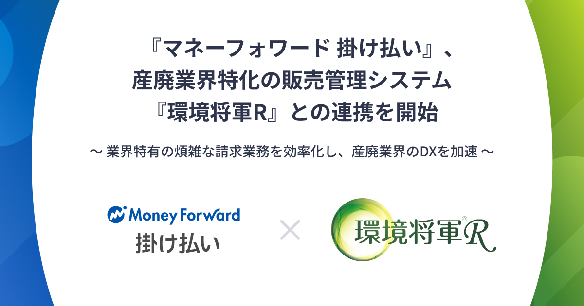 『マネーフォワード 掛け払い』、産廃業界特化の販売管理システム『環境将軍R』との連携を開始