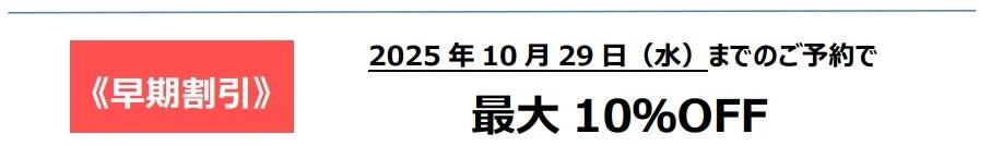 最大10%引きになる早期割引の予約受付は10月29日(水)までです。年始のご準備がお済みではない方はお早めにご予約ください。
