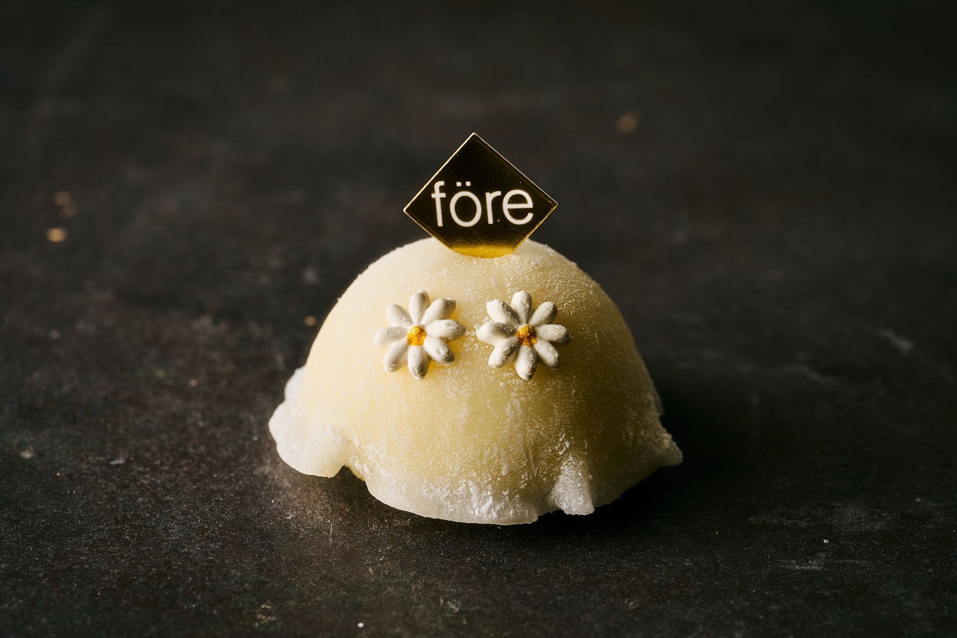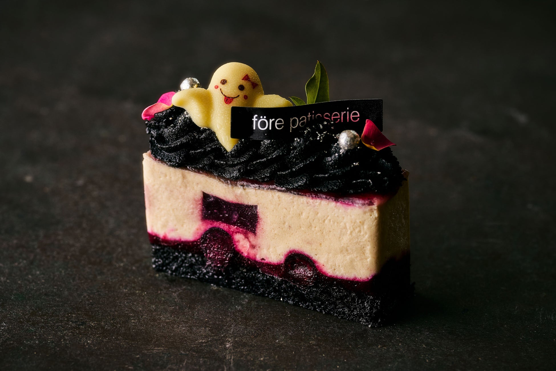 しっとりと焼き上げたスポンジ生地と、ホワイトチョコムースをベースとし、中にはベリーのジュレ、周りには求肥をまとわせた爽やかなスイーツ。 ホワイトゴースト風に仕上げた可愛らしい見た目のスイーツです。
