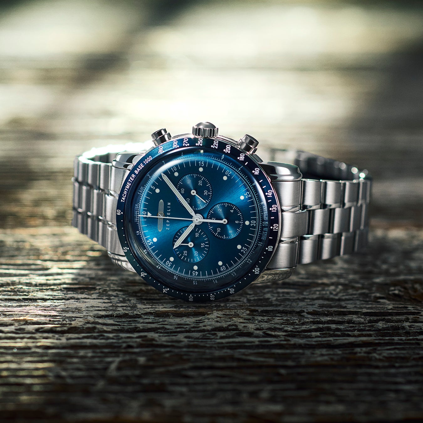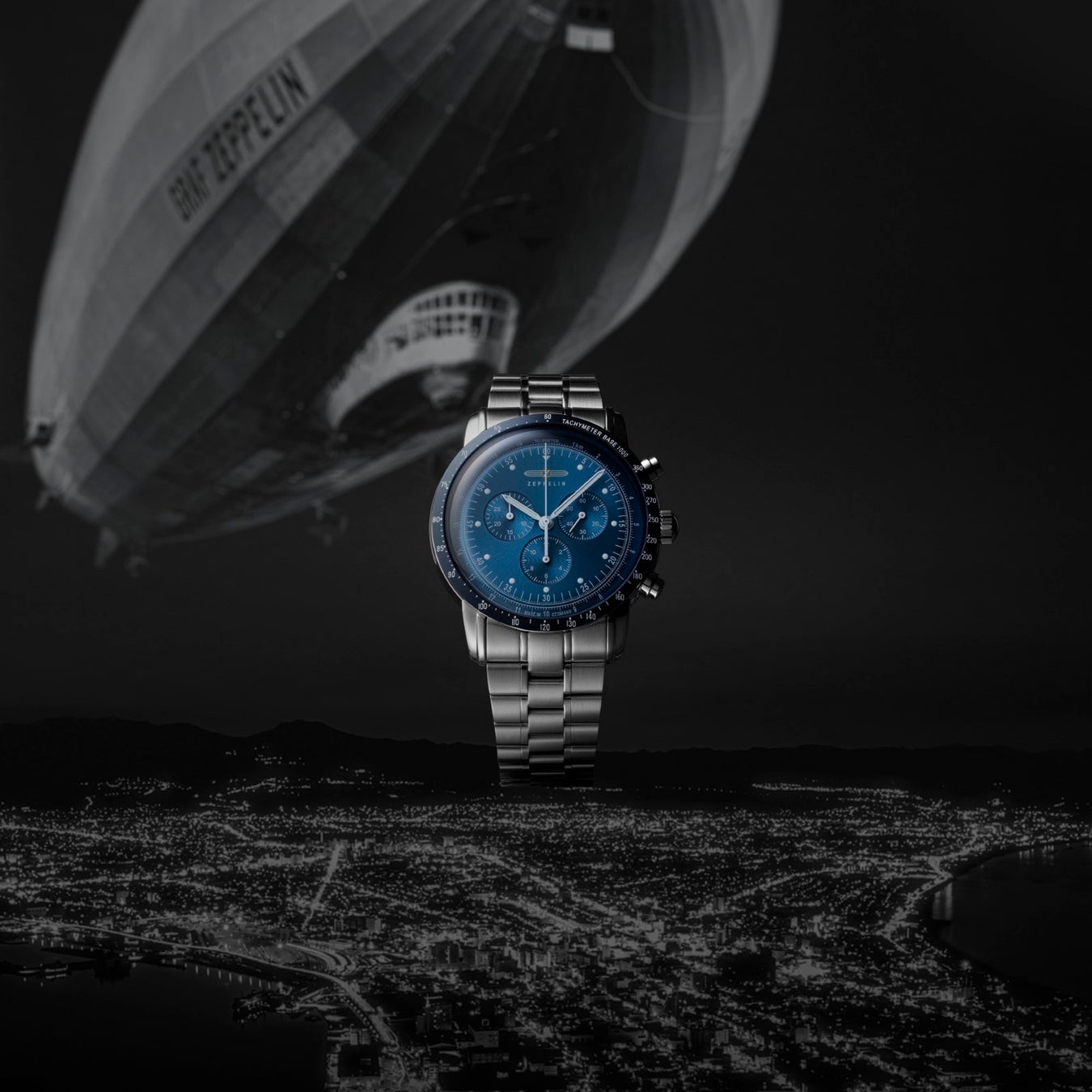 ドイツ時計 ZEPPELIN<ツェッペリン>の<100周年記念シリーズ 日本限定クロノグラフ>ブレスレットモデルに、春夏の袖元を彩るメタリックブルーの新色が登場!