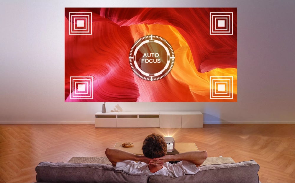 オートフォーカス機能と、斜めから投影しても補正できるキーストーン機能も搭載。