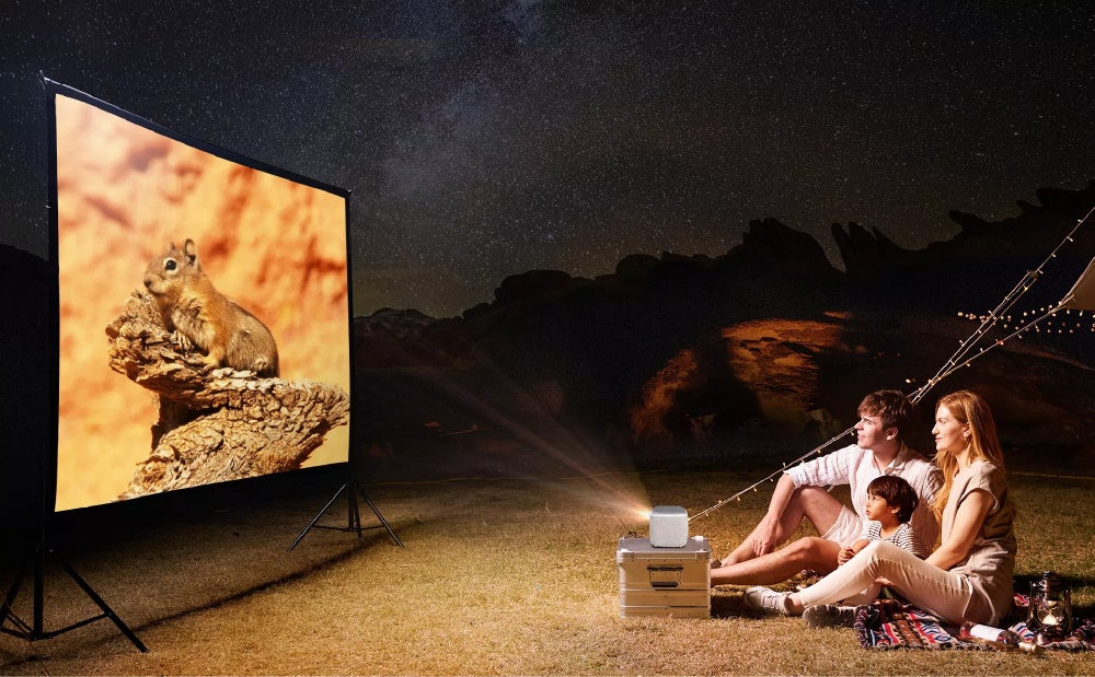 大画面のプロジェクターを手軽に、室内や屋外にも設置がしやすく、