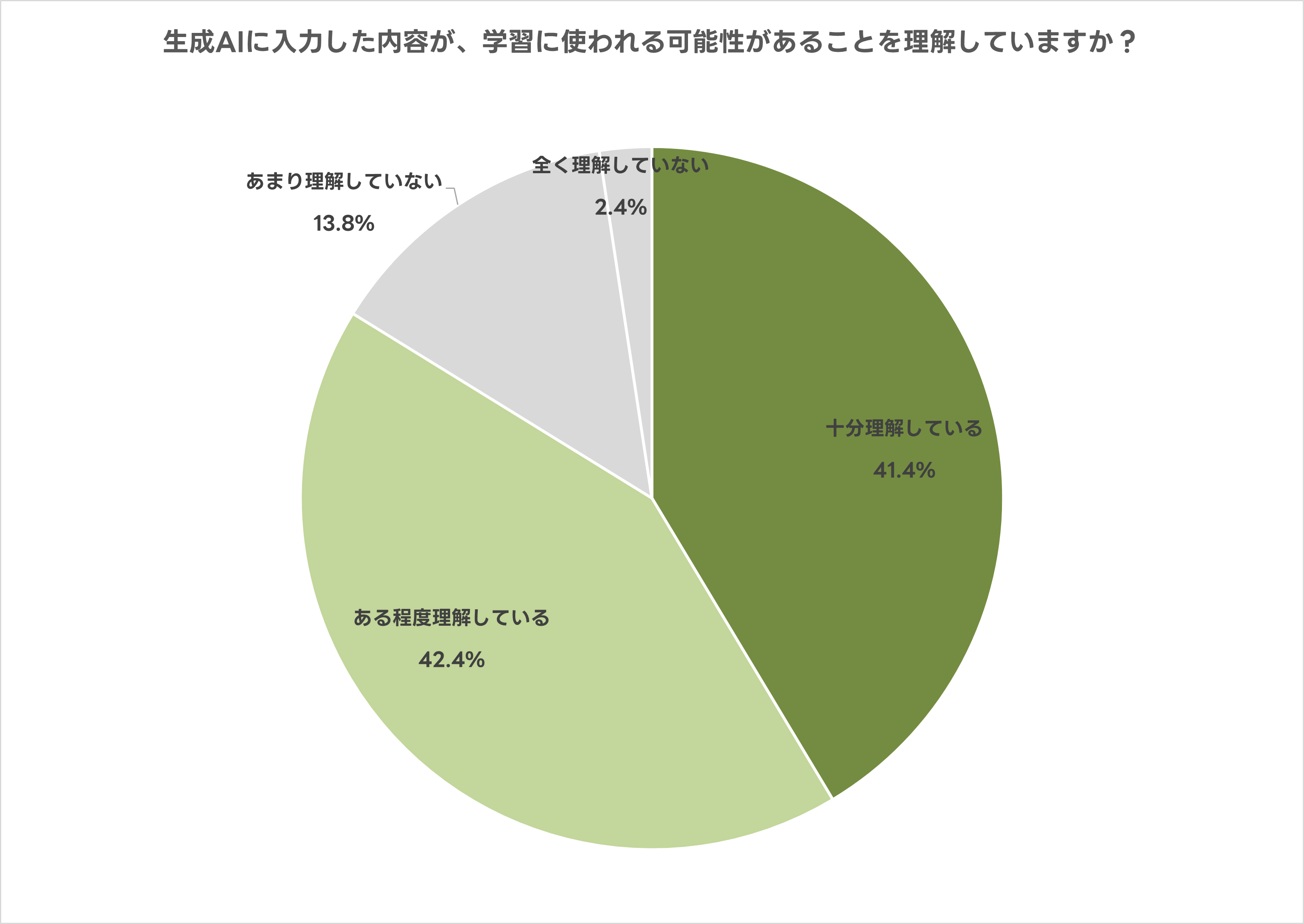 入力内容が生成AIの学習に利用される可能性について、「十分理解している」または「ある程度理解している」人は83.8%でした。データ流出への不安が強い一方で、学習への活用についても多くの人が認識しています。