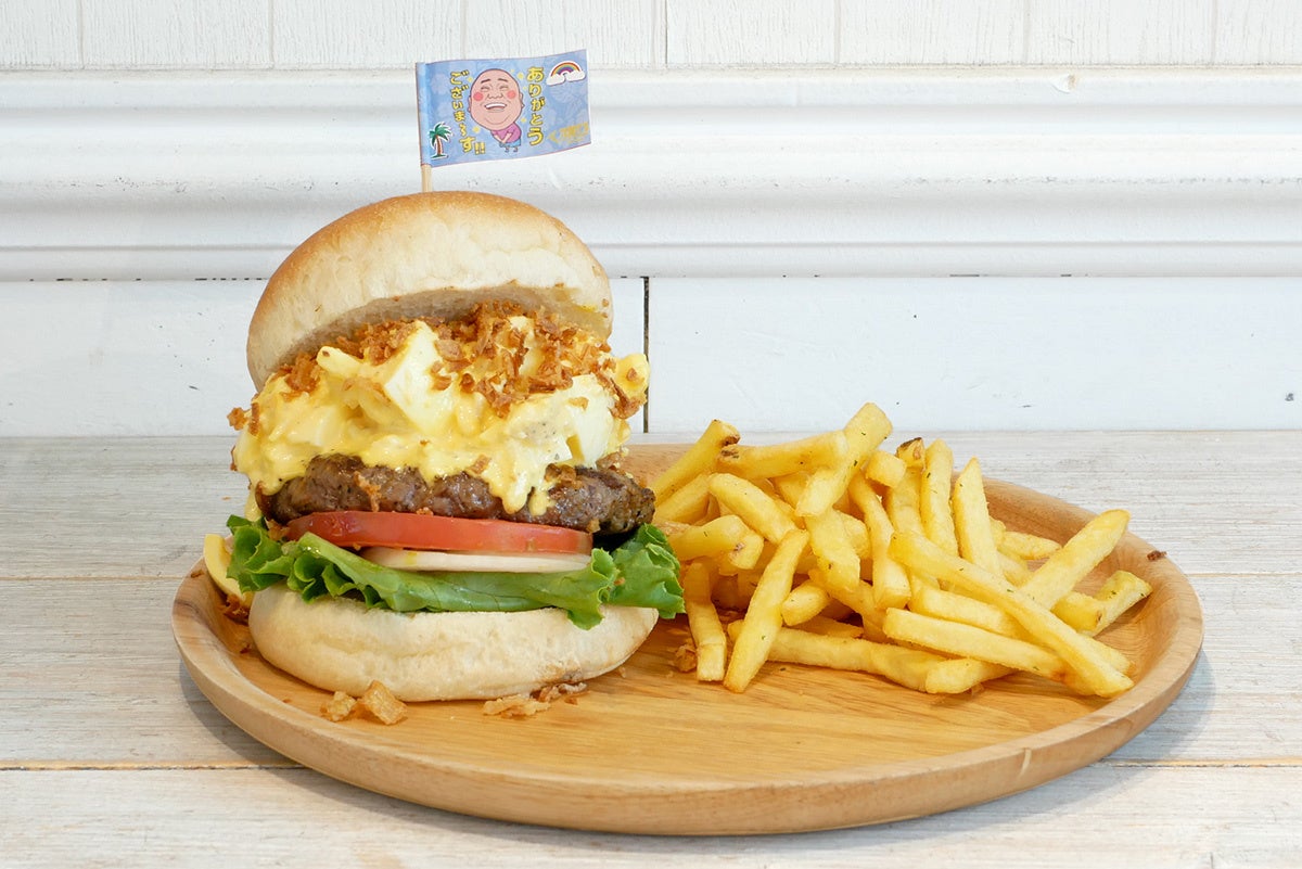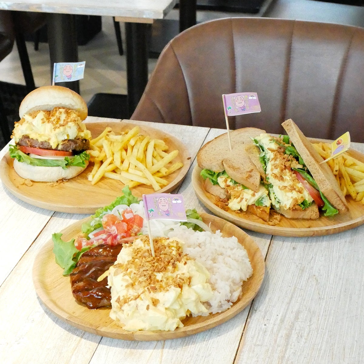 ガーリックライスにジューシーなビーフパティと濃厚エッグサラダを合わせ、自家製テリヤキソースで仕上げた豪華な一皿。ランチやディナーのメインとしても満足度抜群です。