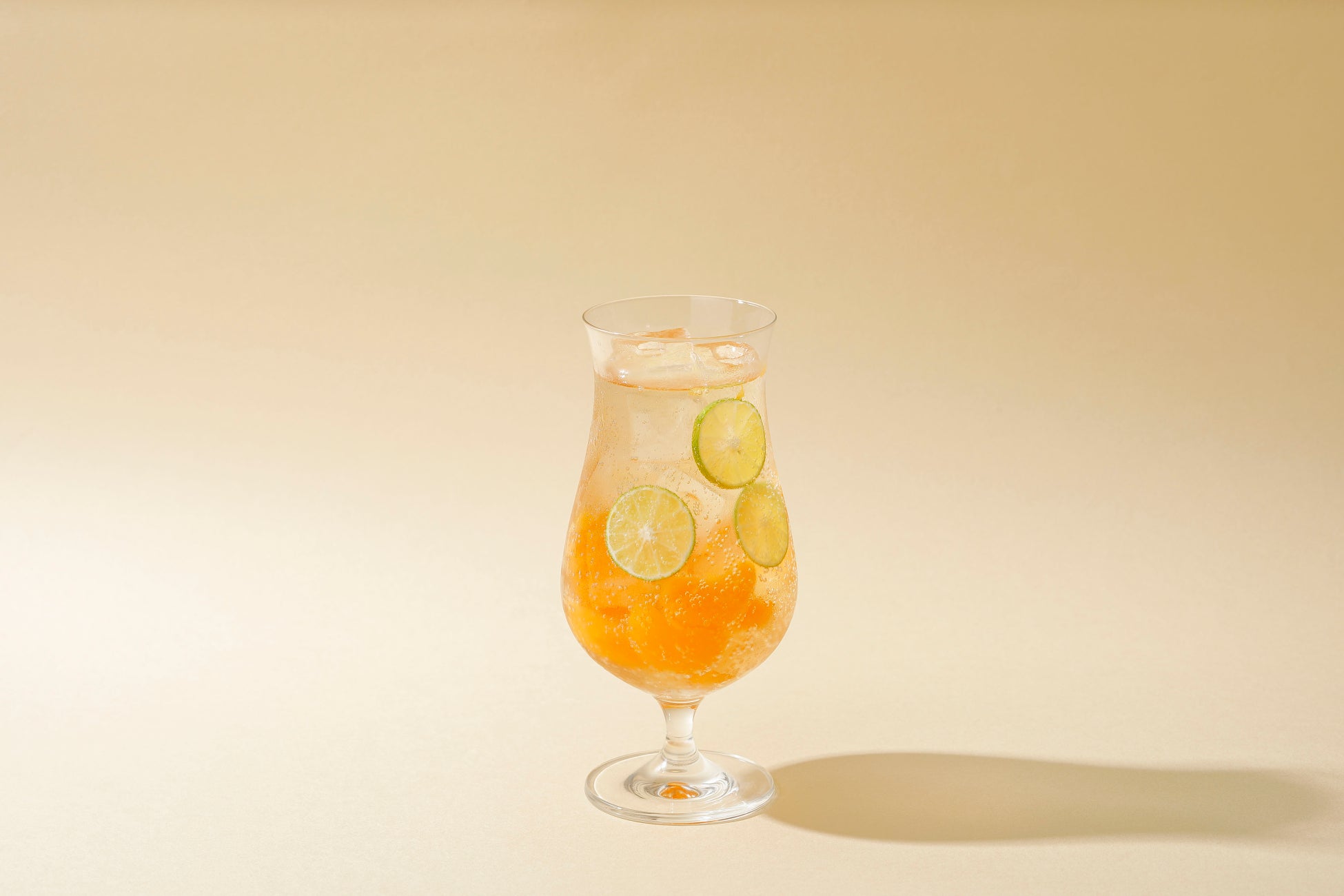 青みかんとジンジャーエールを合わせたモクテルです。グラスの中のみかんを食べながらドリンクをお楽しみください。
