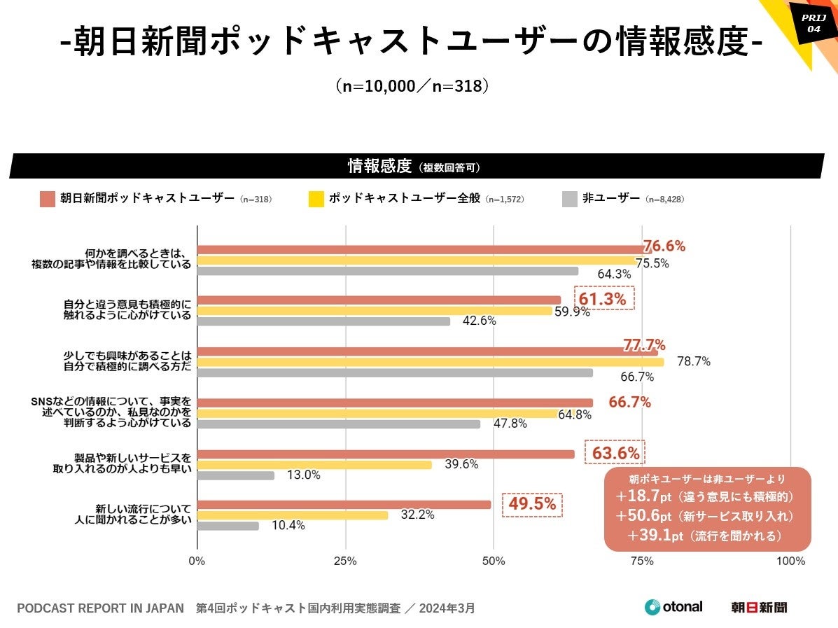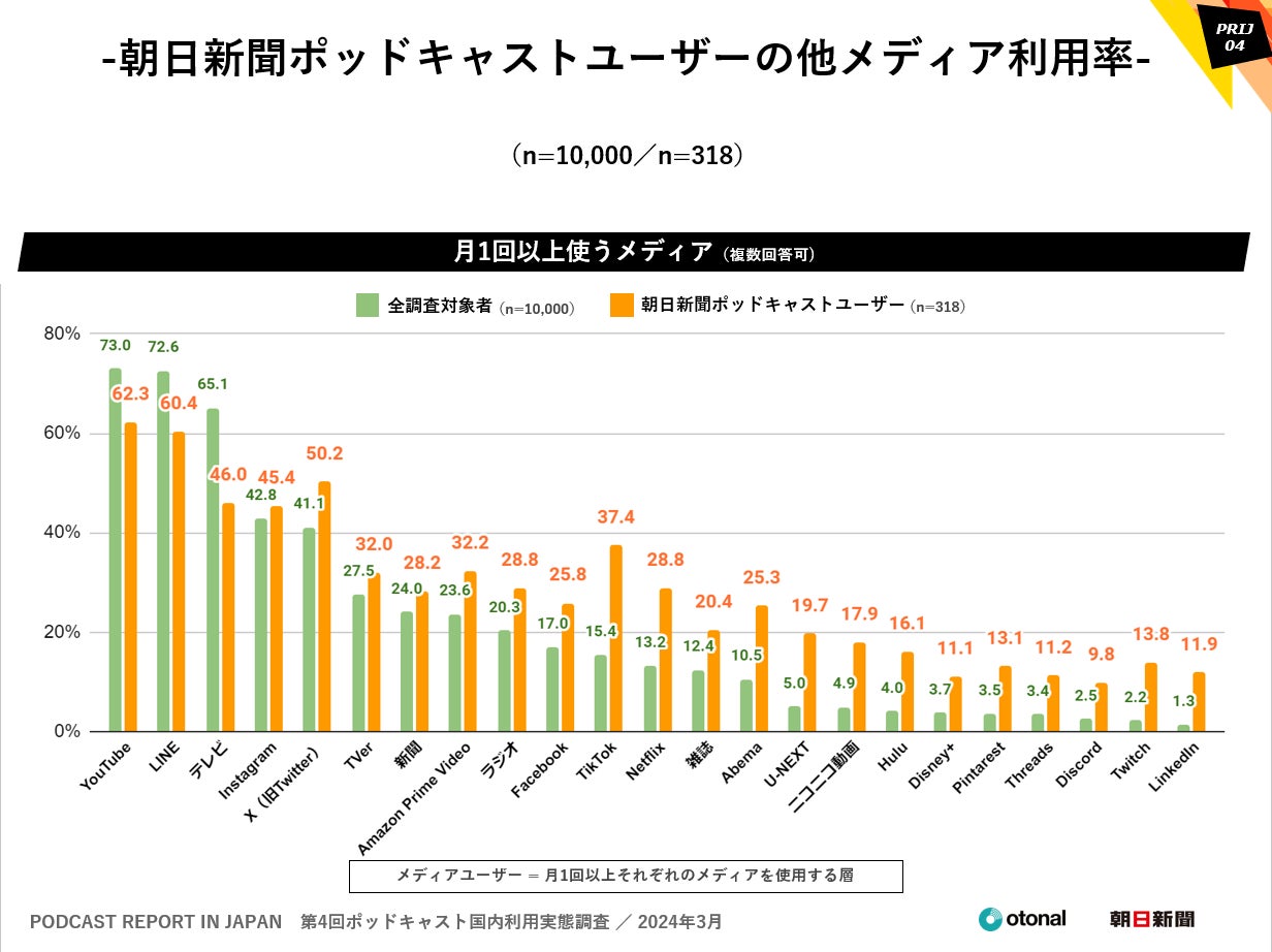 ■朝日新聞ポッドキャストユーザーはYouTubeユーザーやInstagramユーザーよりも新しいトレンドに敏感