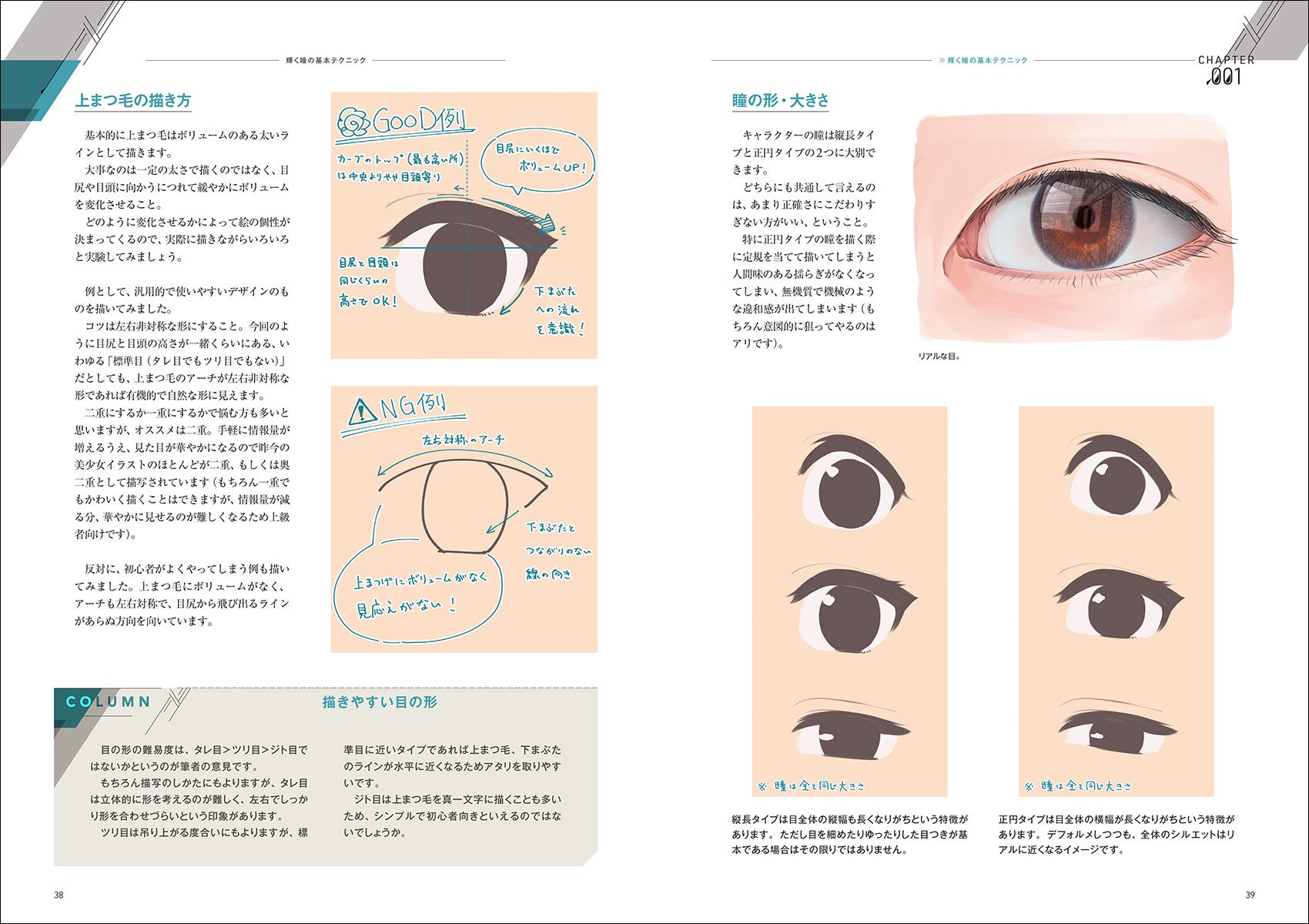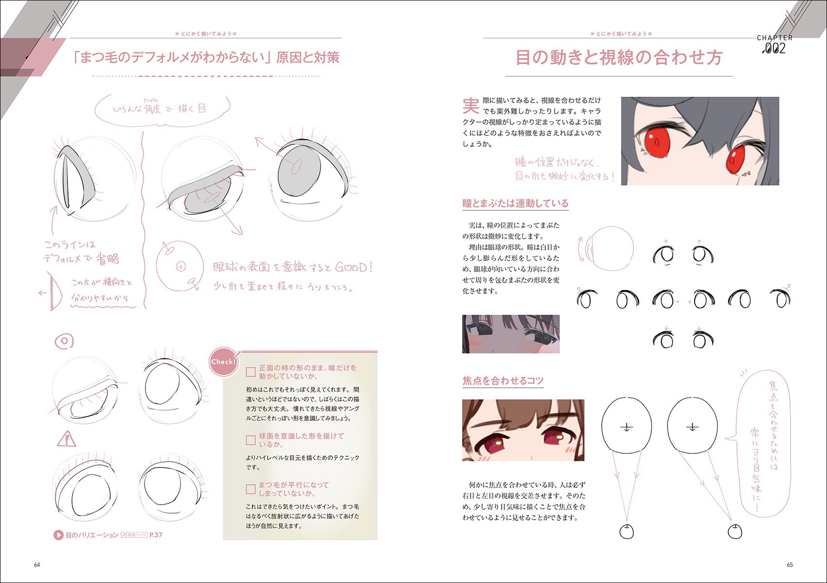CHAPTER2:とにかく描いてみよう(・かわいく見える目の法則・「かわいく見えない」原因と対策・正面の描き方・横顔の描き方・アングルを描き分ける・目とメガネの描き方・まぶたとまつ毛の描き方・目の動きと視点の合わせ方・並んでいる2人の視線を合わせる・「2人の視線が合わない」原因と対策・感情が伝わる瞳の描き方・目の表情バリエーション作例集