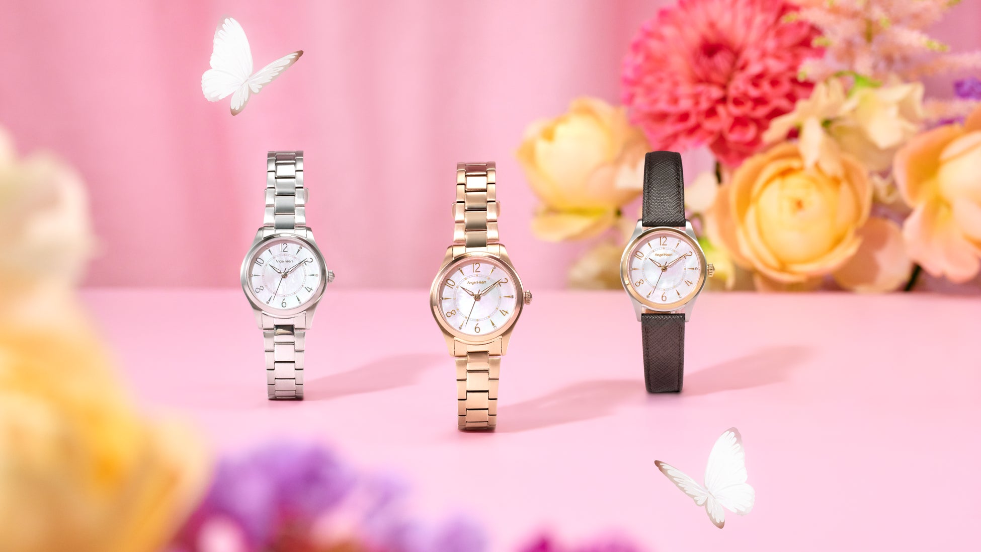 「エンジェルハート」は、進学や入社、新たな一日の始まりなど、人生の大切な節目を迎える女性に寄りそうファーストウォッチとしてぴったりなブランドです。2004年4月に誕生して以来、多くの女性に親しまれています。