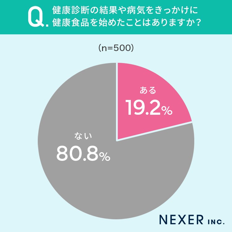 さらに、健康診断の結果や病気をきっかけに健康食品を始めたことはあるか聞いてみました。