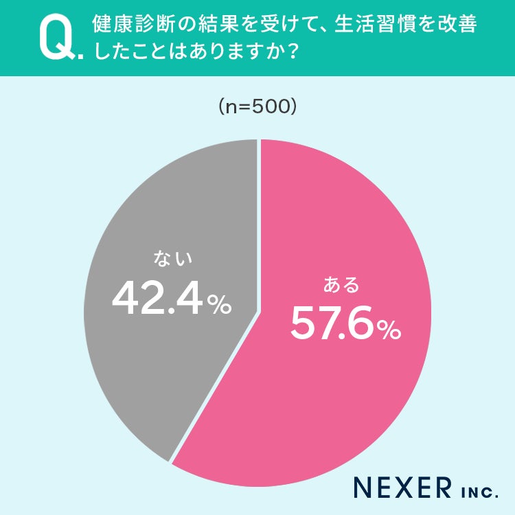 【健康診断を定期的に受けている男女500人に調査】57.6%が、健康診断の結果を受けて「生活習慣を改善したことがある」