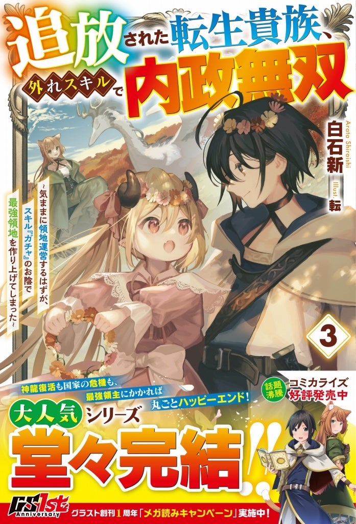 【あらすじ】実家を追放され、辺境領地の領主となった少年ヒロ。ハズレ認定されたスキル『ガチャ』と前世の知識を駆使して領地を発展させていた。とうとう国として独立することになったヒロの領地には彼を慕う大量の住民たちがやってくるが、バフのお陰で衣食住には困らず、人手が増えたことで逆に拡大していく。一方、失脚した父親のせいで故郷が苦しんでいると聞きヒロは支援に乗り出すが、父親の跡を継いだ双子の弟・マリソンからはヒロの領地への侵略を宣言されてしまい…!? マリソンらの不穏な企みにより古代龍や吸血鬼など最強の仲間たちが散り散りとなり、ヒロは過去最大の危機を迎える。そんな時、『レジェンド確定ガチャを発動しますか?』とスキルが発動して――!? 無自覚に最強領地を作り出してしまった少年が送るとんでも内政無双、ここに堂々完結!!