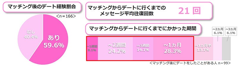■約6割がマッチング相手とデート経験あり! そこに至るまでの期間・メッセージの頻度は…?