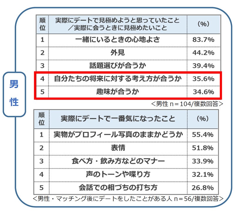 ■“デートで見極めたいこと”、“デート経験者が実際に気になったこと”から見える男女の違いは?