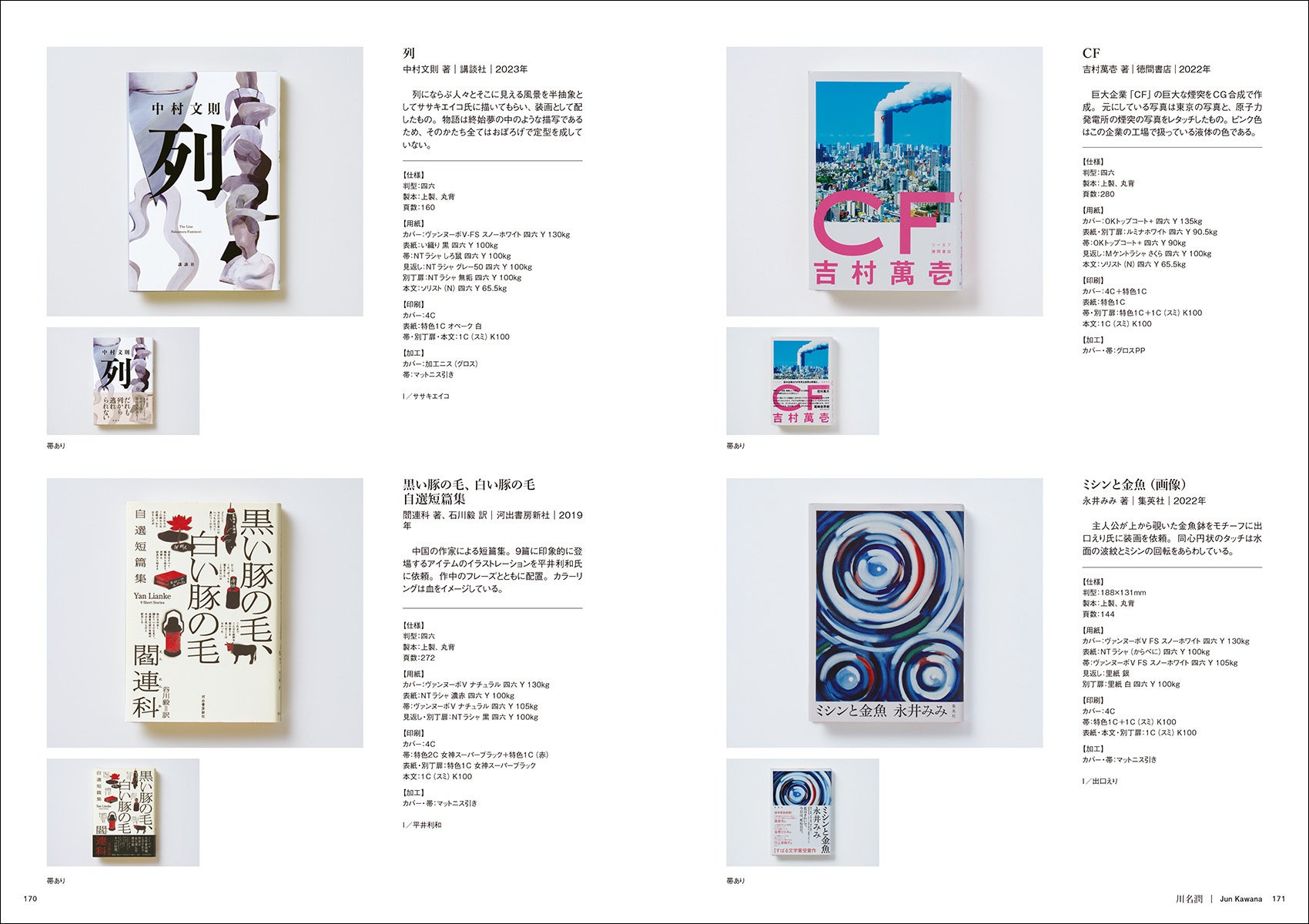 コンセプトやデザインの意図など、メイキングの解説だけでなく、本文やカバー・表紙に使われている用紙の種類や、印刷や製本に関する情報も可能なかぎり記載しています。