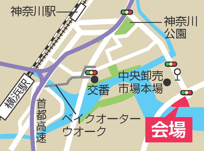 ・JR「横浜駅」きた東口から徒歩20分、京浜急行「神奈川駅」から徒歩15分