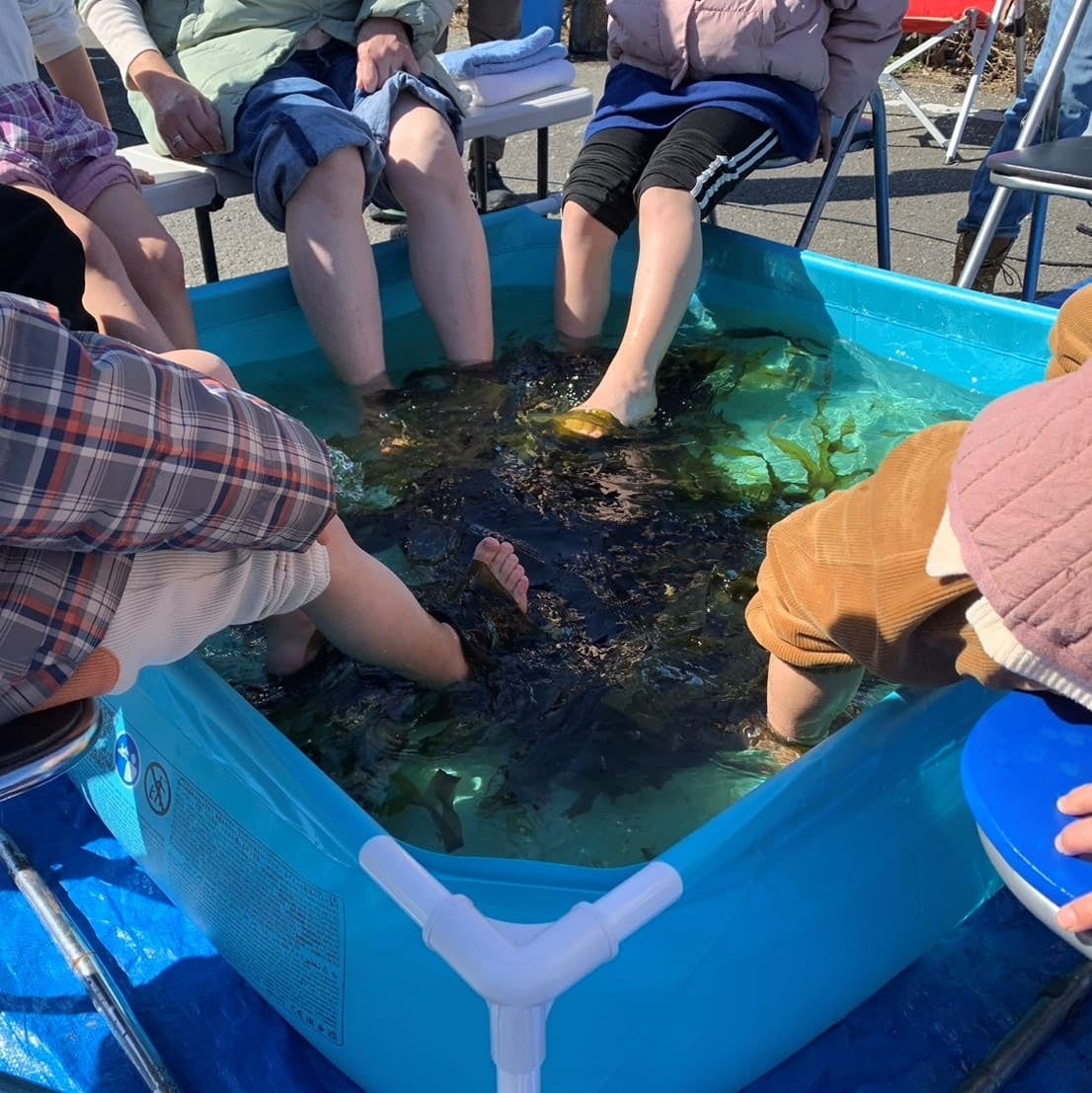横浜産コンブの足湯体験や野菜の重さ当てクイズなど