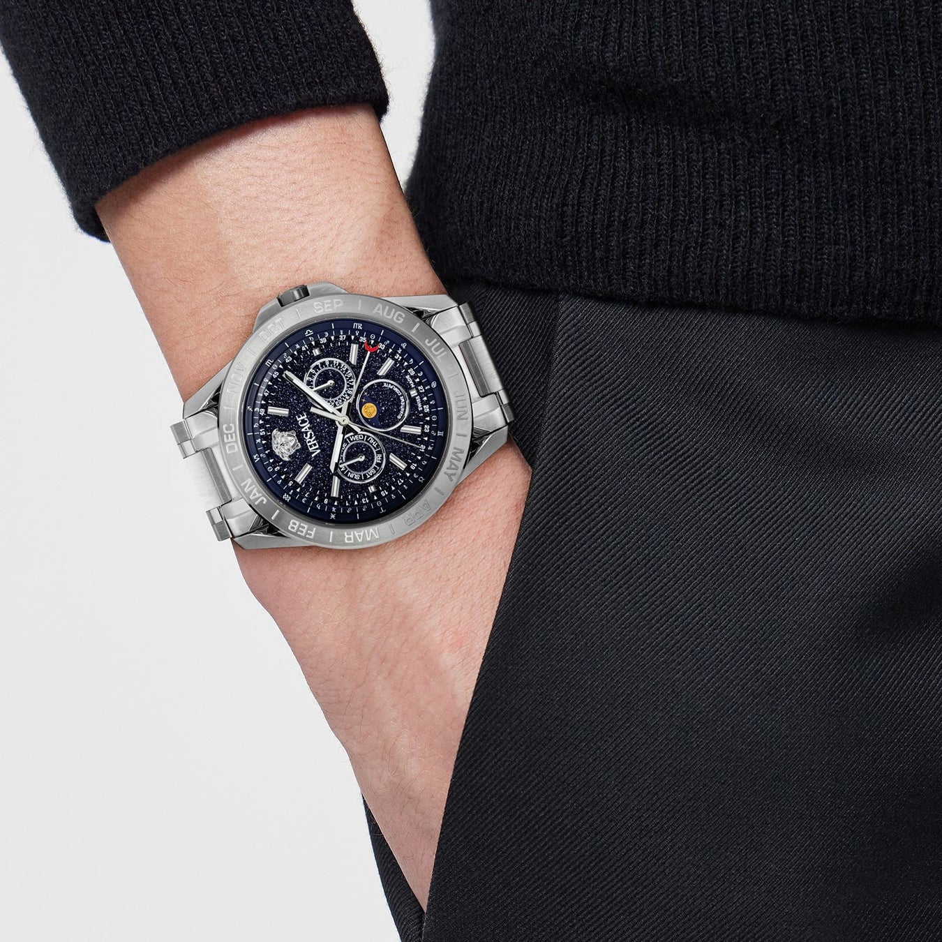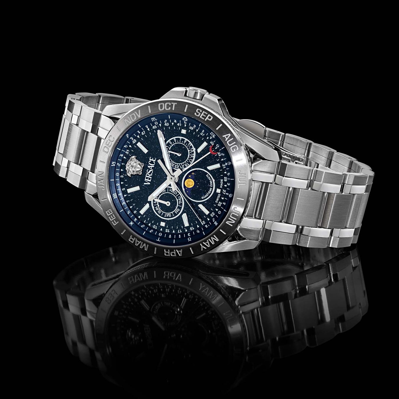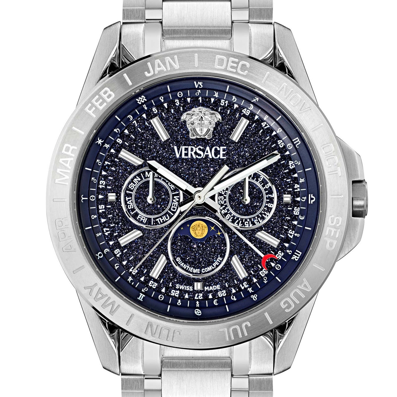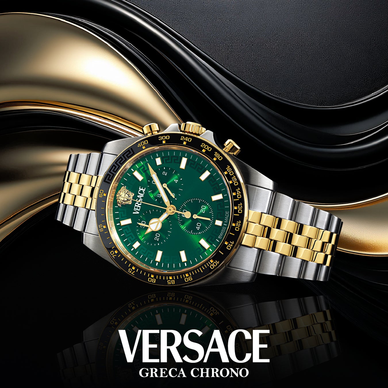『VERSACE』の腕時計から王道と革新の2モデルを同時リリース。クロノグラフ搭載のスポーツモデル「Greca Chrono Wave」と銀河を想起させる「V-Galaxy Moonphase」を発売