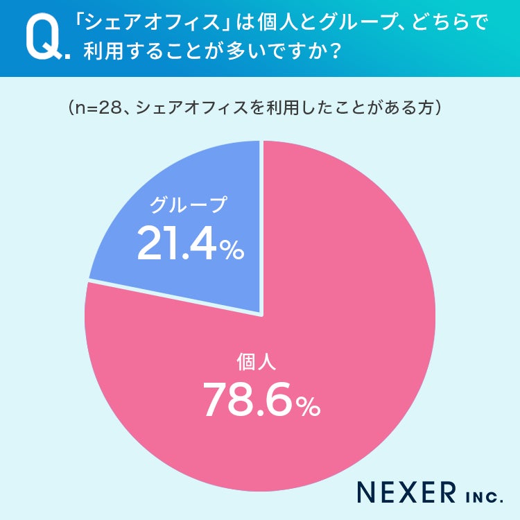 最後に、「シェアオフィス」は個人とグループ、どちらで利用することが多いか聞いてみました。