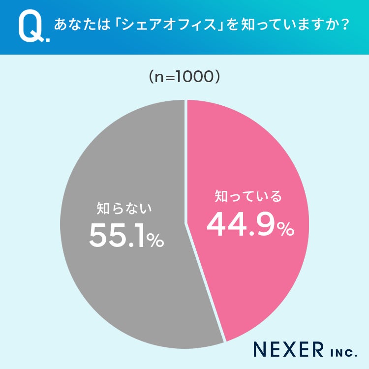 44.9%の方が「シェアオフィス」を知っている、と回答しています。
