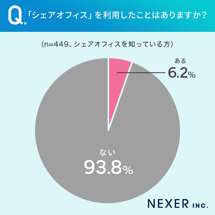 「シェアオフィス」を利用したことがある方は、6.2%という結果になりました。
