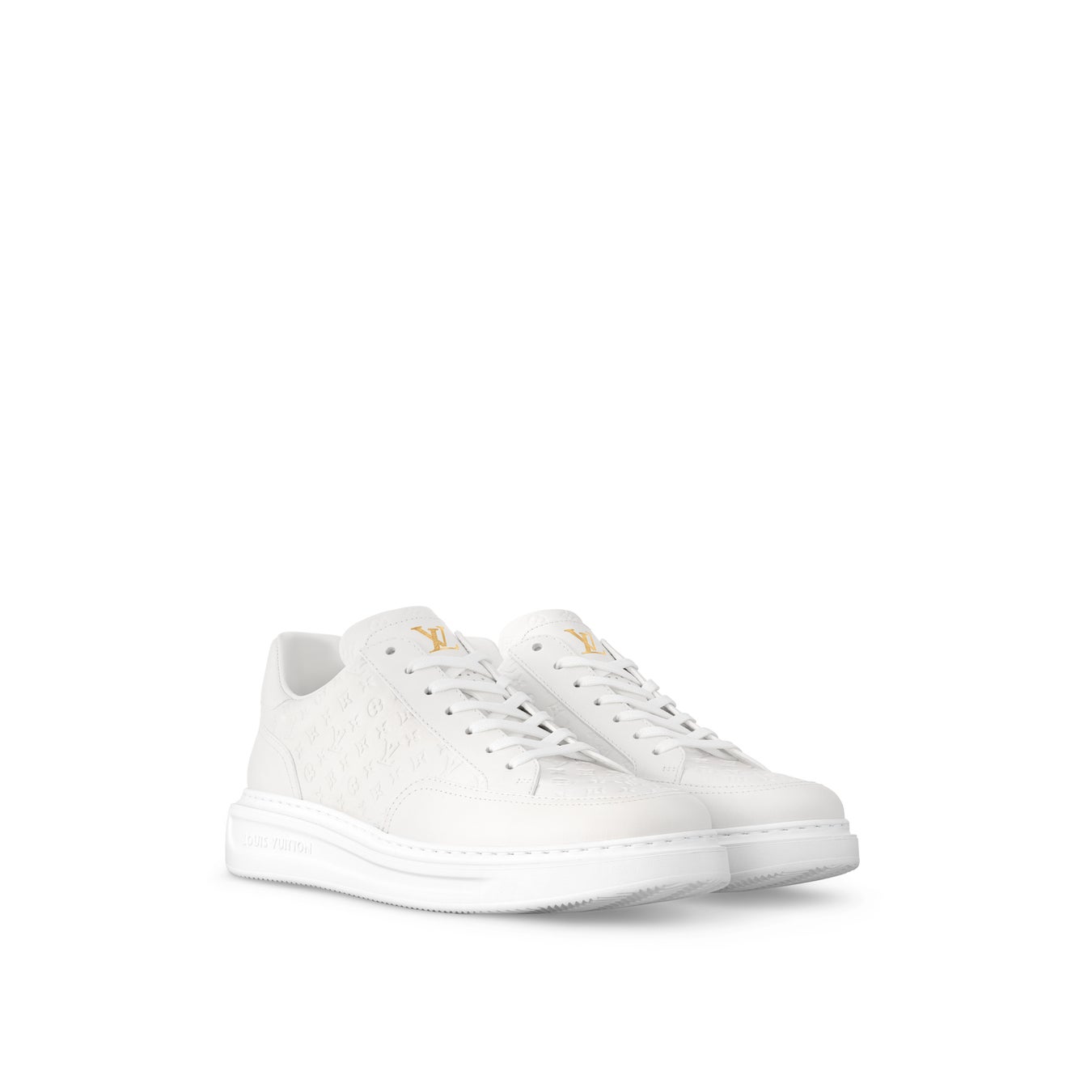 ミニ·モノグラム パターンを部分的にエンボスしたスムースレザーで仕立てた「ビバリーヒルズ·ライン スニーカー」。スマートなレザーのアッパーとこの上なく快適な履き心地を実現する軽量のラバーを使用したチャンキーなアウトソールが独特のコントラストを描きます。シュータンと背面には「Louis Vuitton Paris」シグネチャーをエンボスであしらいました。