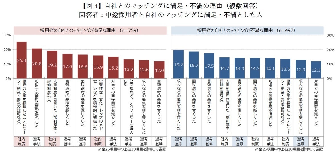 【図4】自社とのマッチングに満足・不満の理由(複数回答)