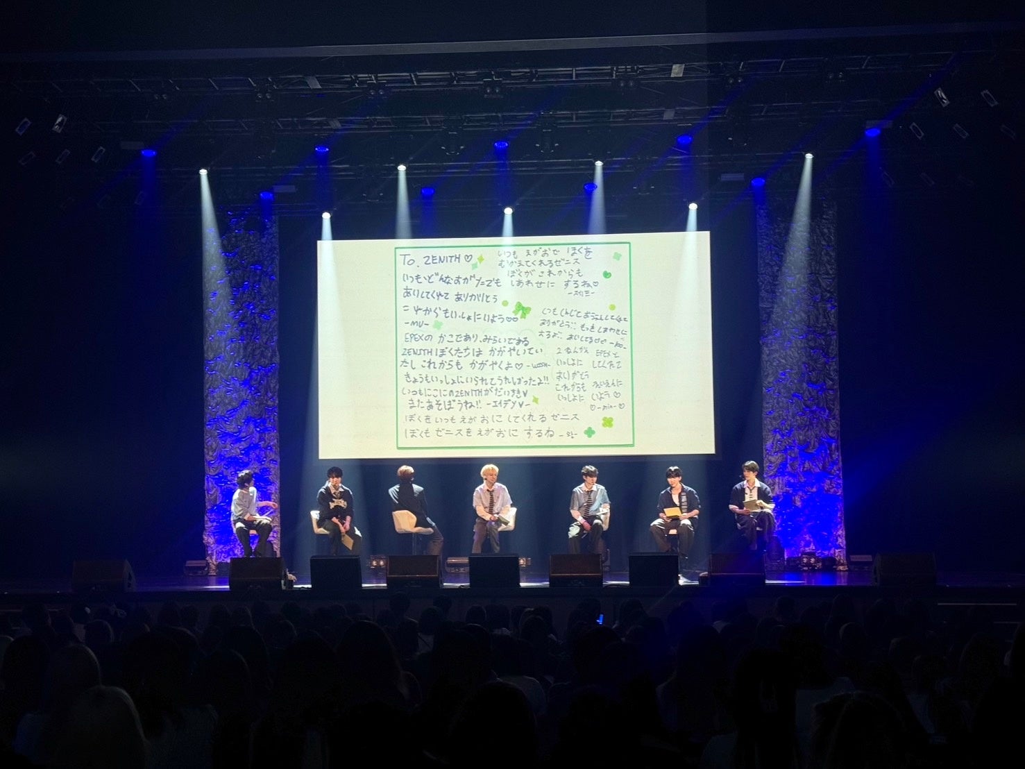 さらに、公演前に会場で、ZENITHがEPEXに宛てたメッセージや聞きたいことを募集。メッセージでびっしりと埋まったボードが登場した。メンバーはそれぞれ、「全部読みたい…!」「韓国語で書いてくれてるなんてびっくり。みんな優しい…!」と喜びを見せた。