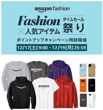 さらに、Amazonが世界で展開するオンデマンド・プリントサービス「Amazon Merch on Demand」からは、11月よりご提供を開始しているAmazonロゴがデザインされたアパレルやスマホケースに新たにパーカーなどが新発売。100種類以上のラインナップ全てがセールに登場します。お客様は豊富なデザイン・色・サイズ・型の中からお気に入りの商品を選んでいただくことが可能です。そのほか「ポイントアップキャンペーン」も実施。キャンペーンに登録の上、本セール期間中に合計10,000円以上お買い物していただくと、Amazonポイントの還元率が最大5.5%*までアップし、最大5,000ポイントが獲得できます。セール商品以外もポイント還元対象となります。服・靴・バッグ・財布・腕時計・ジュエリーカテゴリーの商品のご購入では4.5%のポイントが追加され、最大10%*となります。