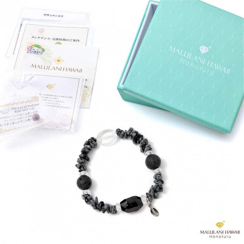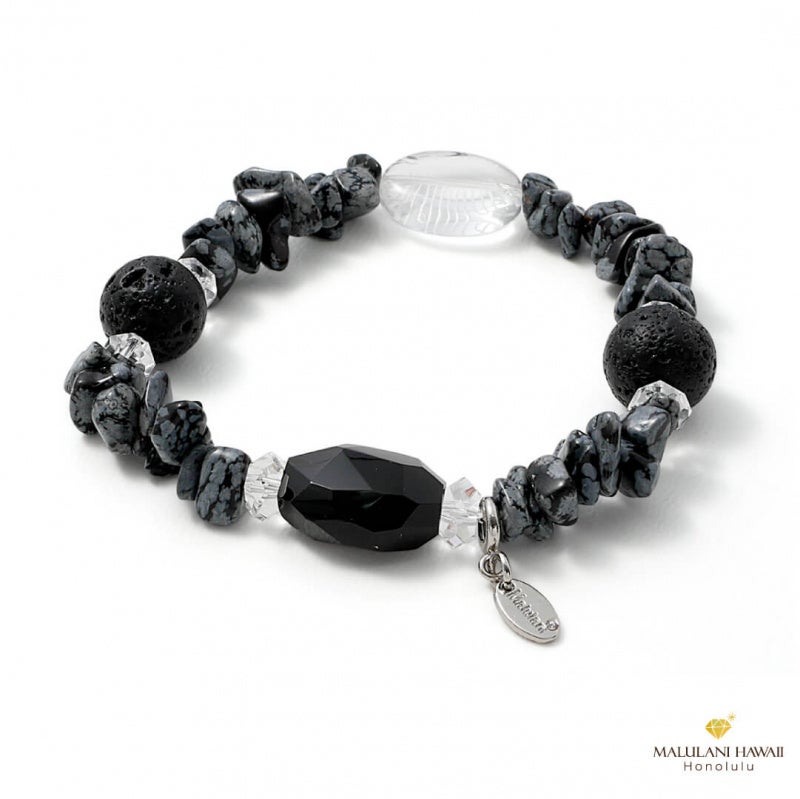 スノーフレークやラバストーンの個性豊かな表情は、シンプルながらもおしゃれのポイントとしても魅力。厄除けや仕事運のお守りとしてもおすすめです。