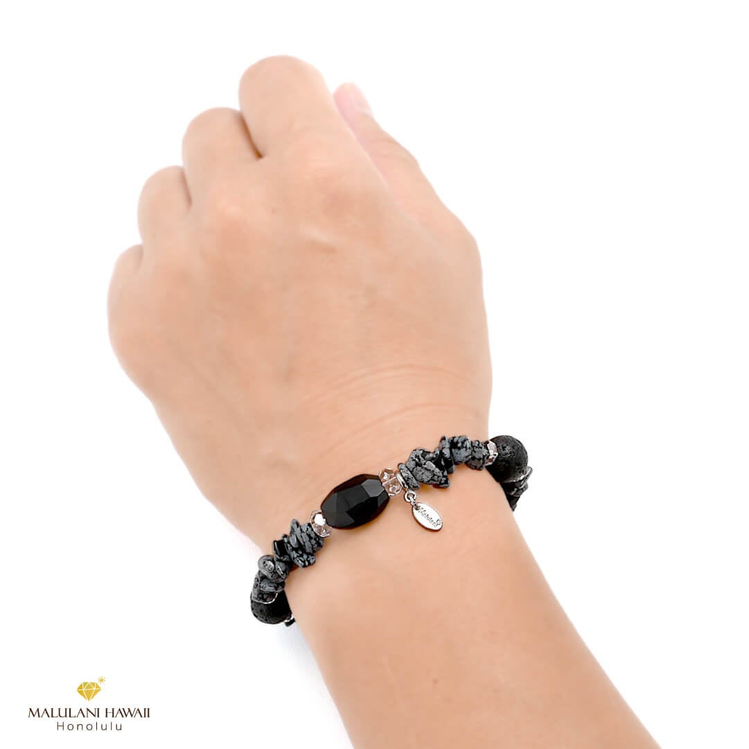 静けさと力強さを感じさせるブラック系のストーンで仕立てた、クールなブレスレット。