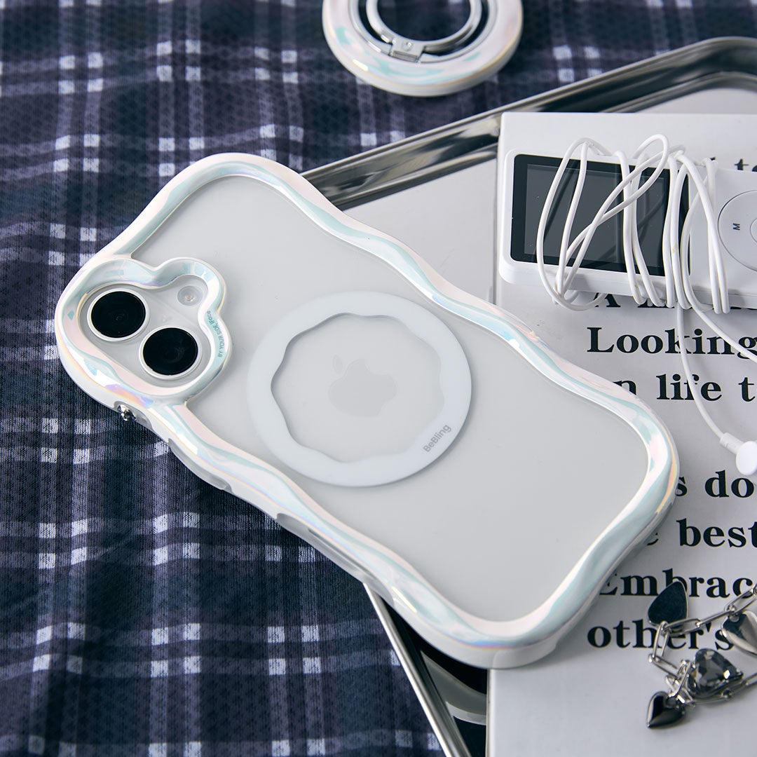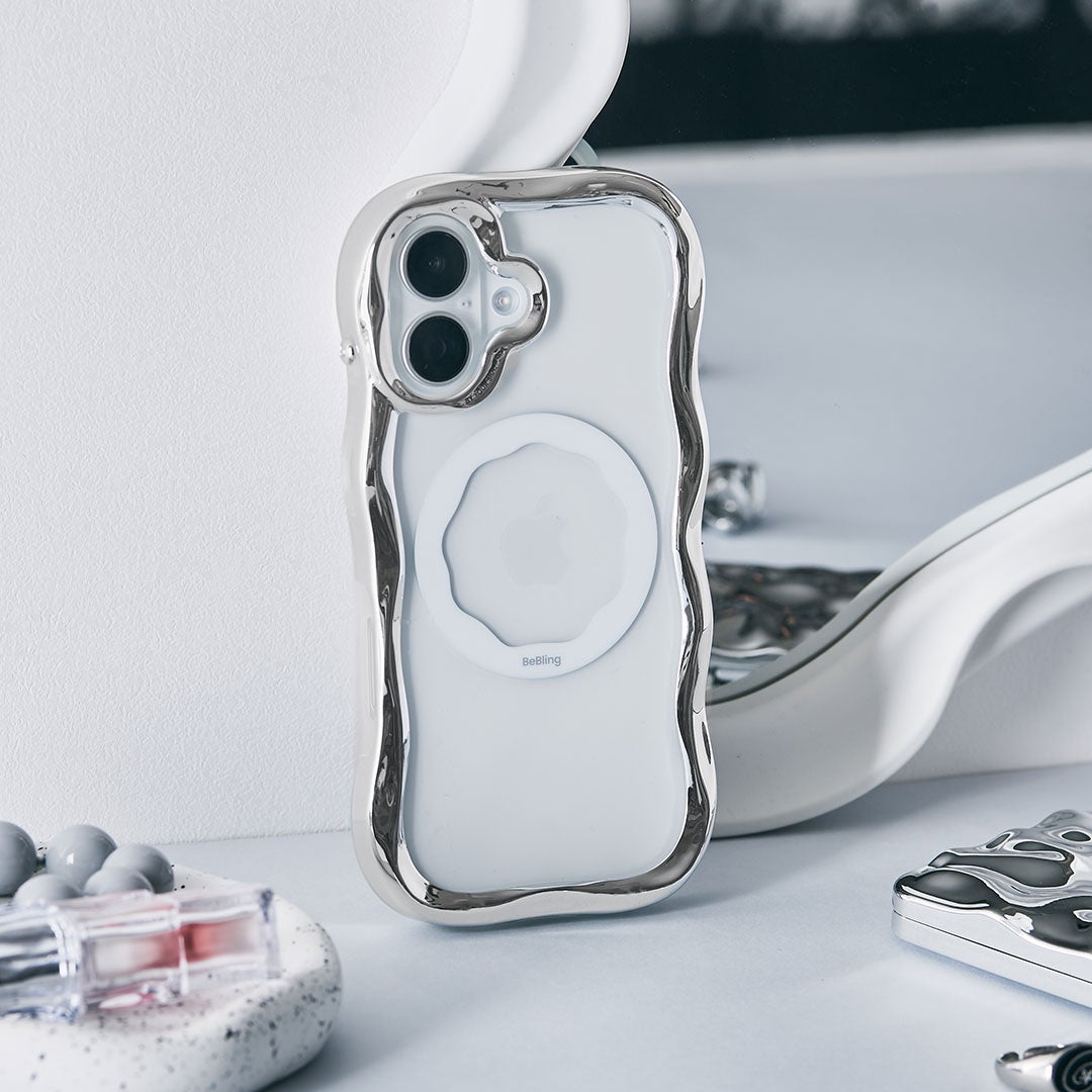 本シリーズは、ウェーブデザインときらめきを特徴としたスマホケースに加え、あわせて使えるモバイルアクセサリーを展開しています。ファッションに自然に溶け込みながら、日常のスタイルにトレンド感をプラスしてくれるアイテムです。