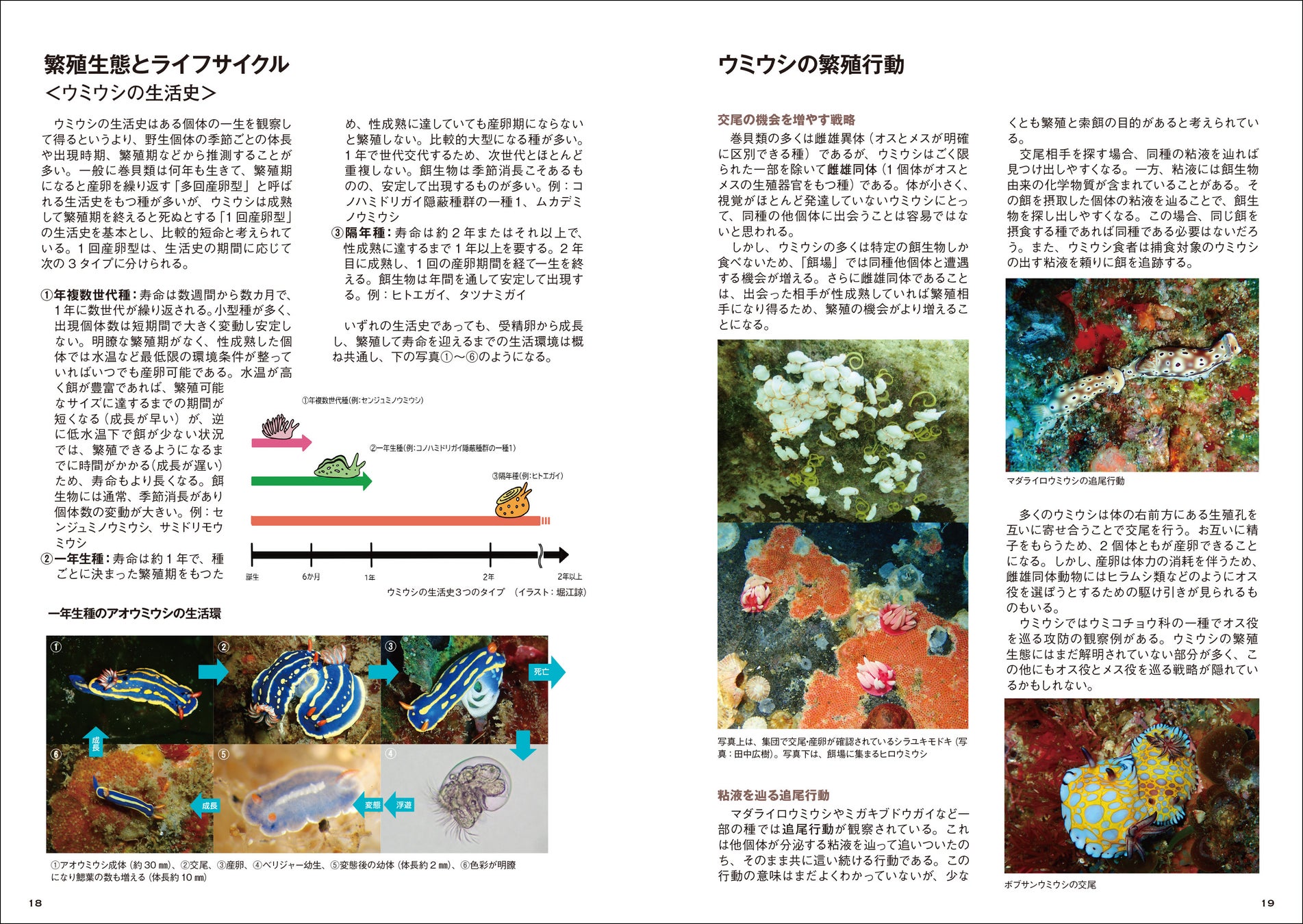 ウミウシの知られていなかった接餌や繁殖などの生態、生存戦略などを明らかにした画期的な図鑑。