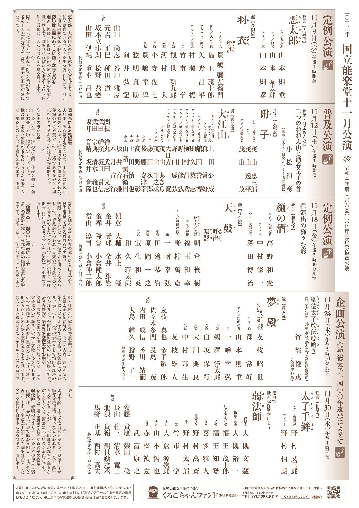 11月定例公演 樋の酒・天鼓 / 2022年11月18日(金)午後5時30分開演