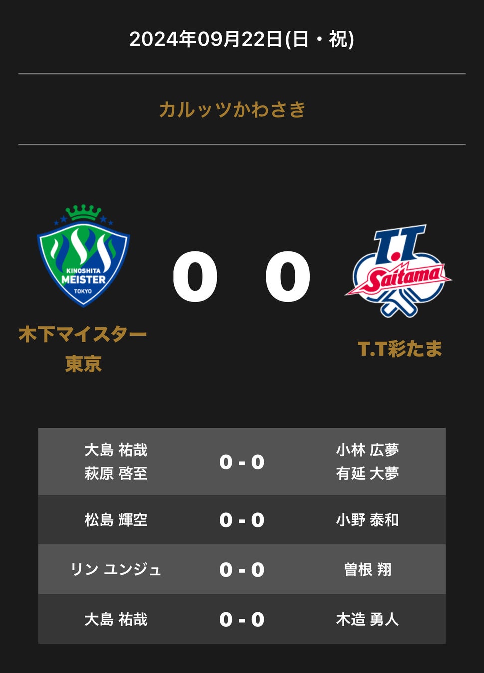 ノジマTリーグ 2024-2025シーズン 公式戦 9月22日開催 木下マイスター東京 vs T.T彩たま オーダー発表