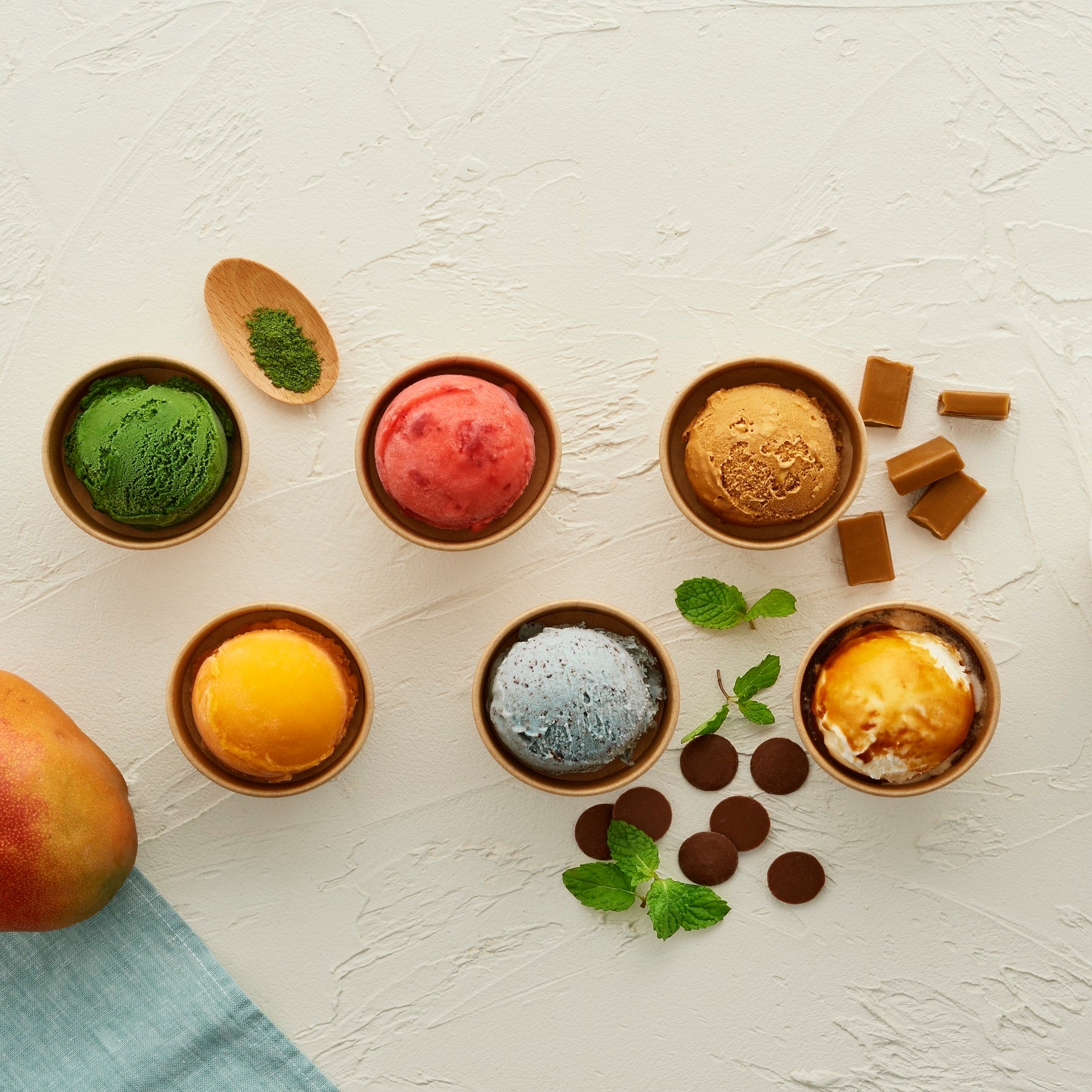 地域限定の「りんごミルク」、「オホーツクの塩」などを始め、無印良品で人気の「ジャージー牛乳」や「抹茶」など、約10種のアイスクリームを提供します。